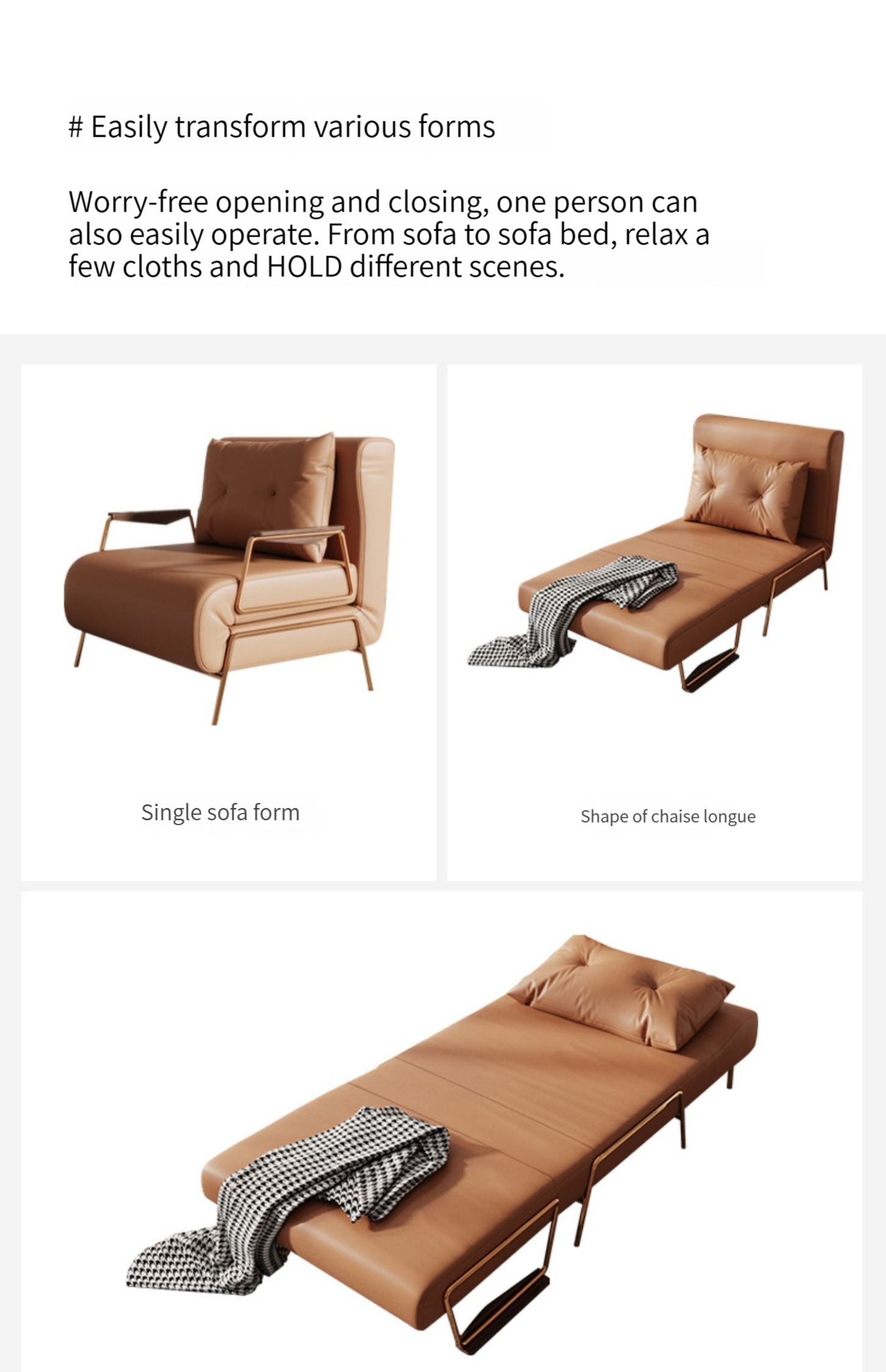 Warner multi-functional sofa bed, modern minimalist recliner, suitable for small living rooms with foldable single sofa bed dual-use