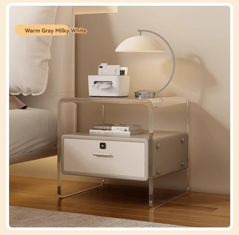 [Local Stock] Acrylic Nightstand Modern Simple Multifunctional With Lock Cream Wind High Value Children's Room Sideboard Small Mini-Smart-Living