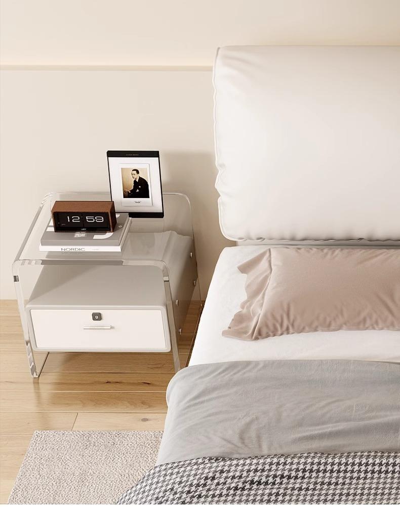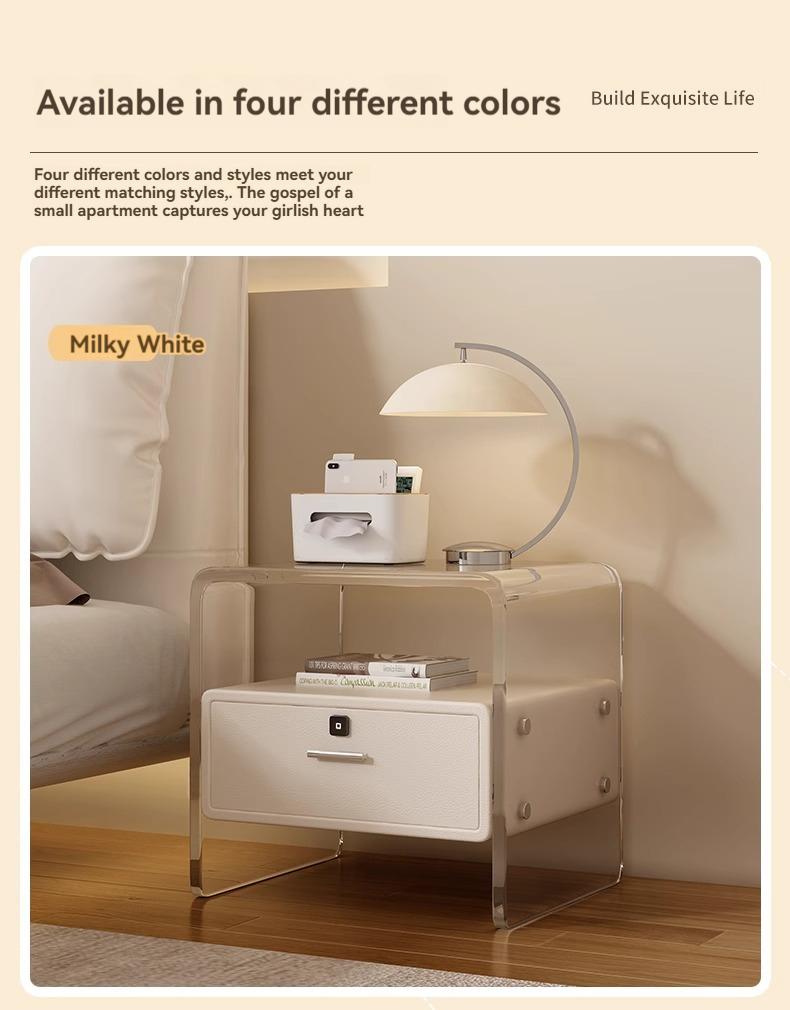 [Local Stock] Acrylic Nightstand Modern Simple Multifunctional With Lock Cream Wind High Value Children's Room Sideboard Small Mini-Smart-Living [Local Stock] Acrylic Nightstand Modern Simple Multifunctional With Lock Cream Wind High Value Children's Room Sideboard Small Mini-Smart-Living