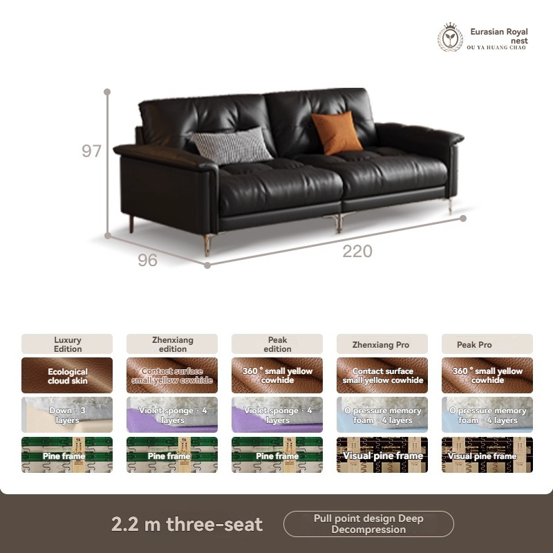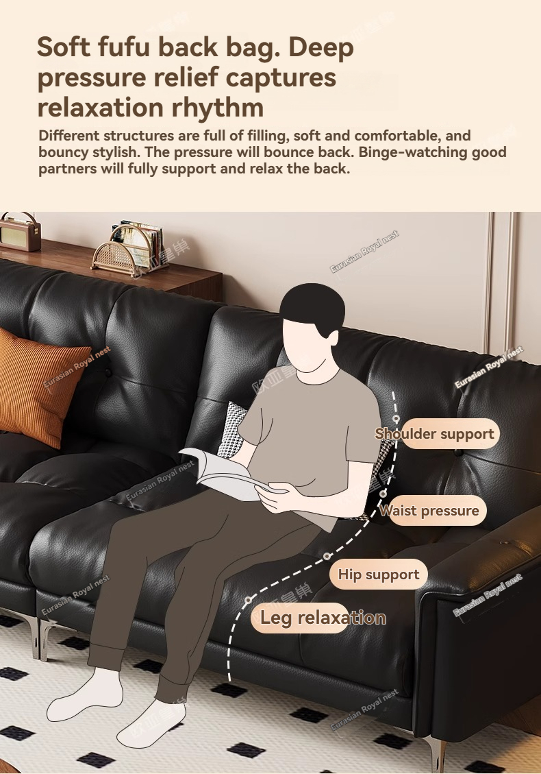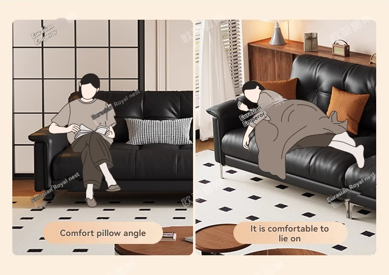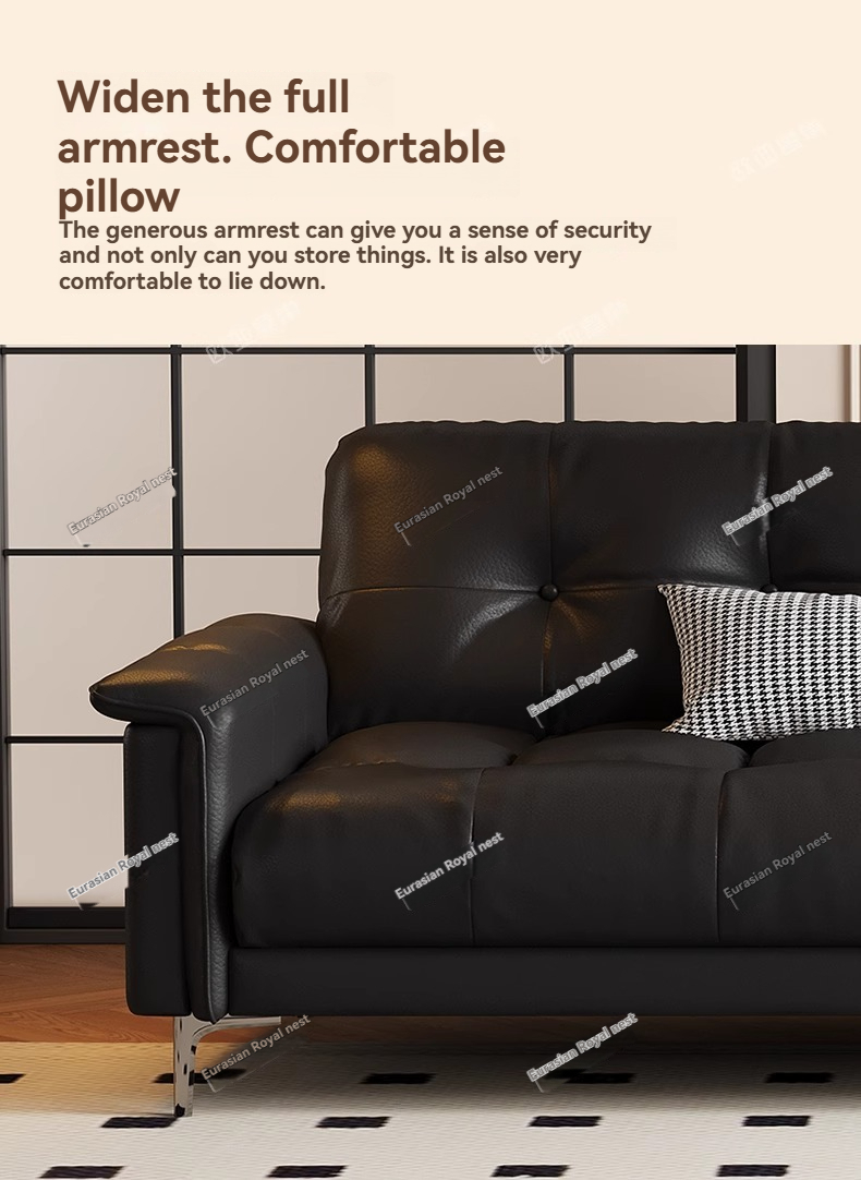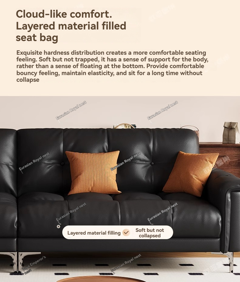 (PRE ORDER / BTO PACKAGE - OY - SOFA-ZP-SF-003) Eurasian Imperial Nest Black Genuine Leather Sofa - Living Room Compact French Straight-Line Mid-Century Style Starry Cloud Sofa (2025 New Model