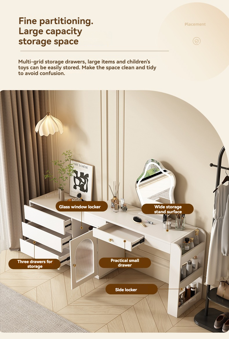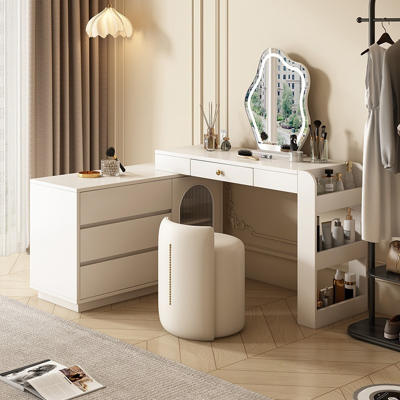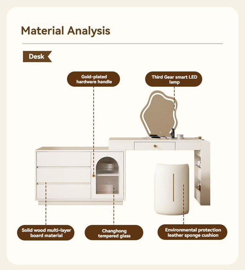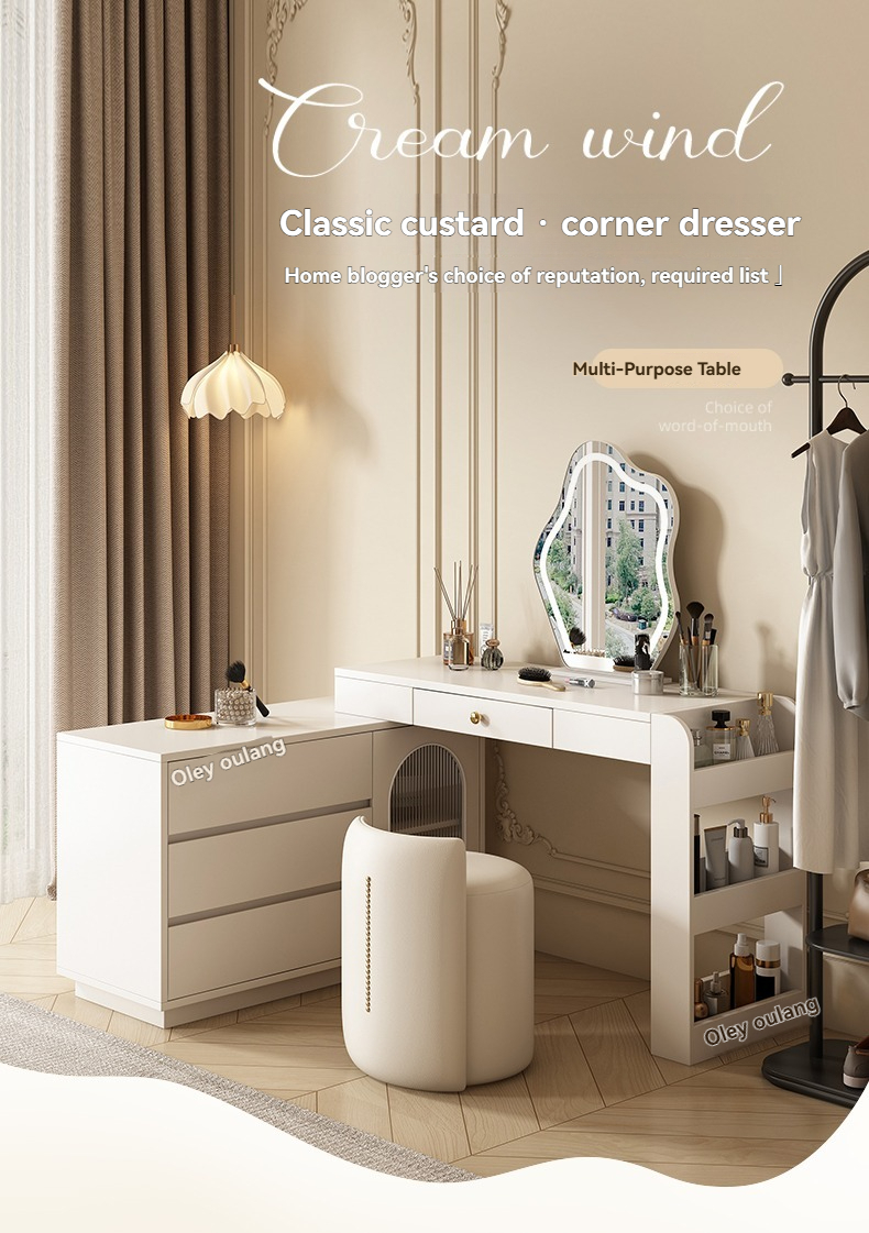 [Pre-order-BTO PACKAGE]2025 New Model (Cream Style) LED Vanity Dressing Table with Mirror, Compact Corner Makeup Desk and Study Table Combo for Small Bedrooms