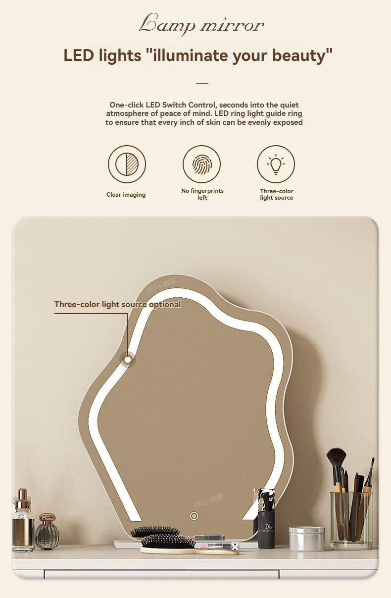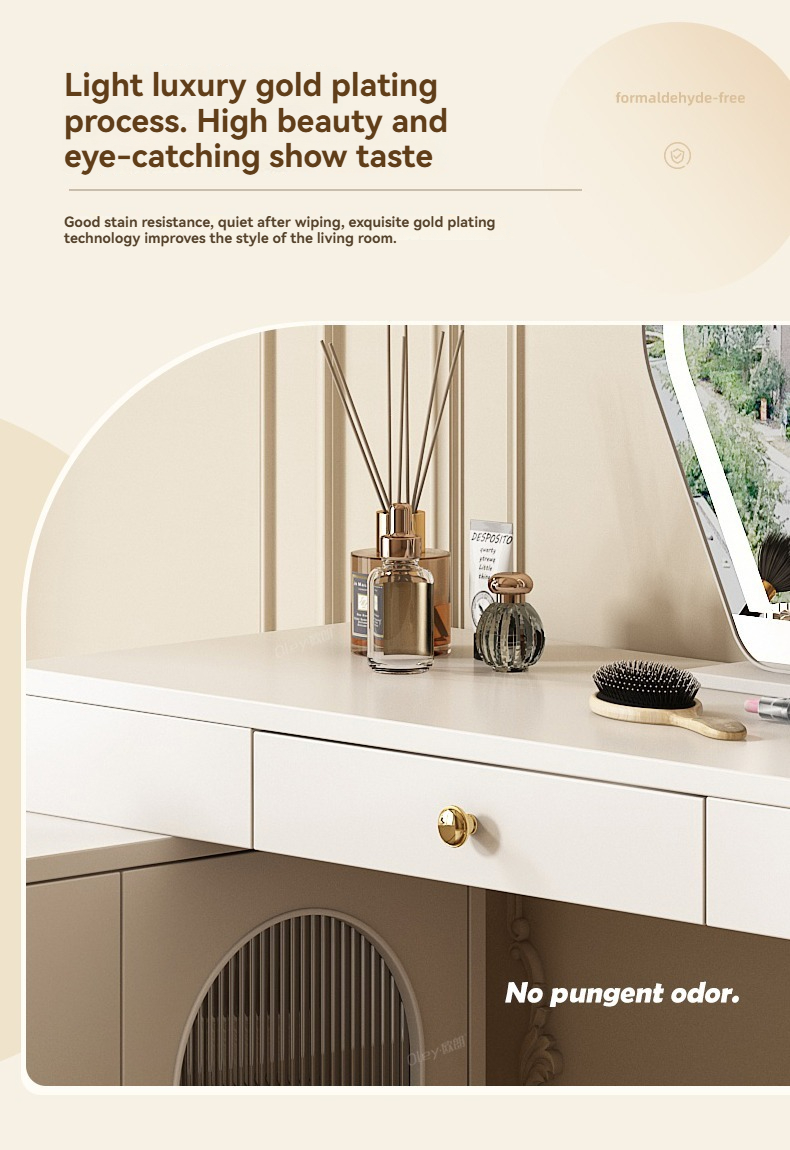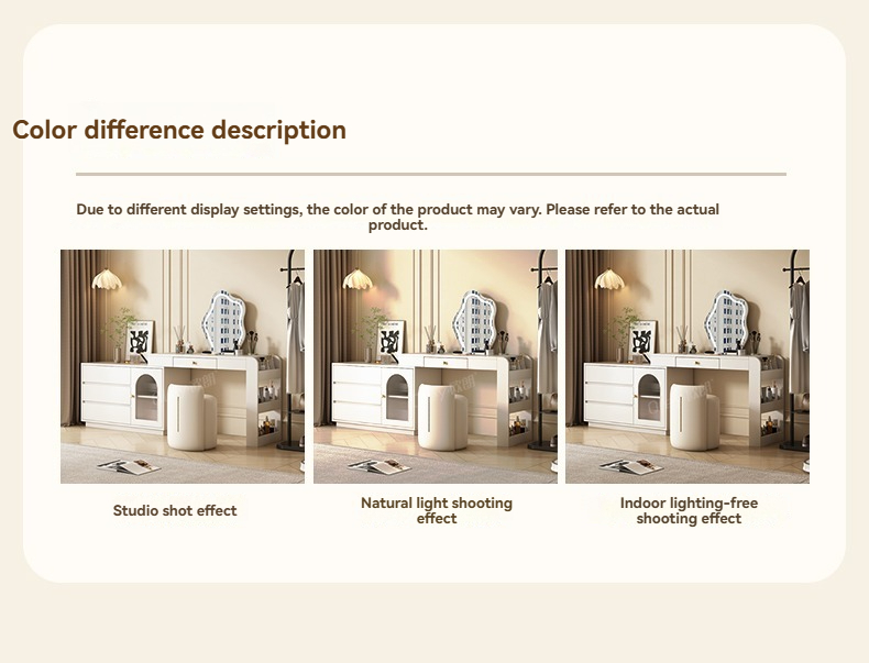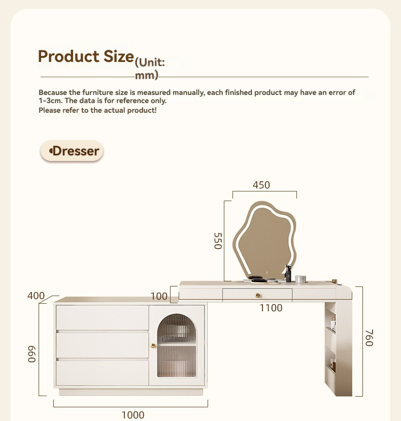 [Pre-order-BTO PACKAGE]2025 New Model (Cream Style) LED Vanity Dressing Table with Mirror, Compact Corner Makeup Desk and Study Table Combo for Small Bedrooms