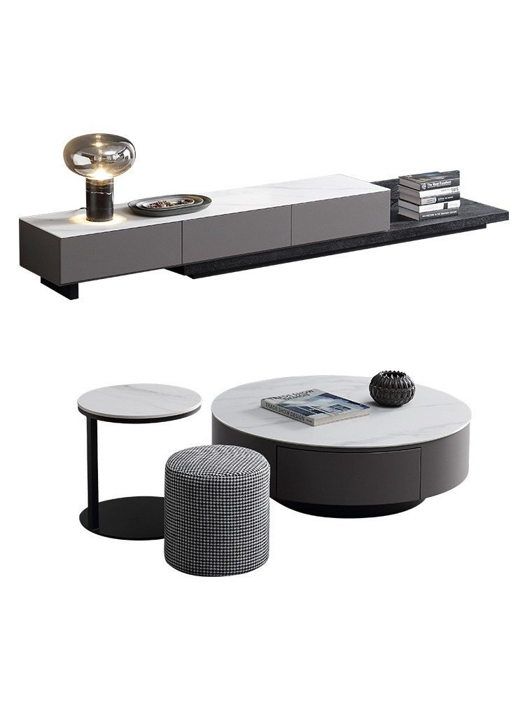 (Pre-Order/BTO Package)Luxury Modern Marble TV Stand, Living Room Minimalist Italian Style Extendable TV Cabinet, Small Apartment Glossy Paint Media Console