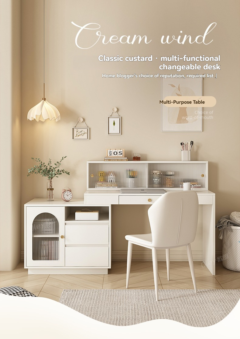 [Pre-order-BTO PACKAGE] Solid Wood Cream-Colored White Desk, Simple and Modern, Home Use, Bedroom Computer Table, Laptop Office Desk