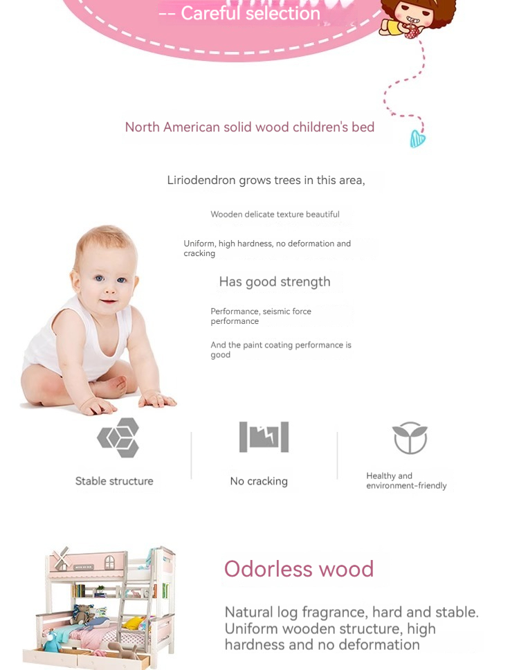 [Pre-order] Children's high and low bed, mother and child bed, two-story bunk wooden bed, cartoon mother and child bed, bunk bed, all solid wood-Smart-Living [Pre-order] Children's high and low bed, mother and child bed, two-story bunk wooden bed, cartoon mother and child bed, bunk bed, all solid wood-Smart-Living