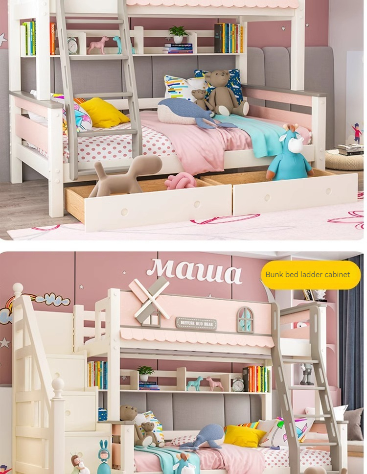 [Pre-order] Children's high and low bed, mother and child bed, two-story bunk wooden bed, cartoon mother and child bed, bunk bed, all solid wood