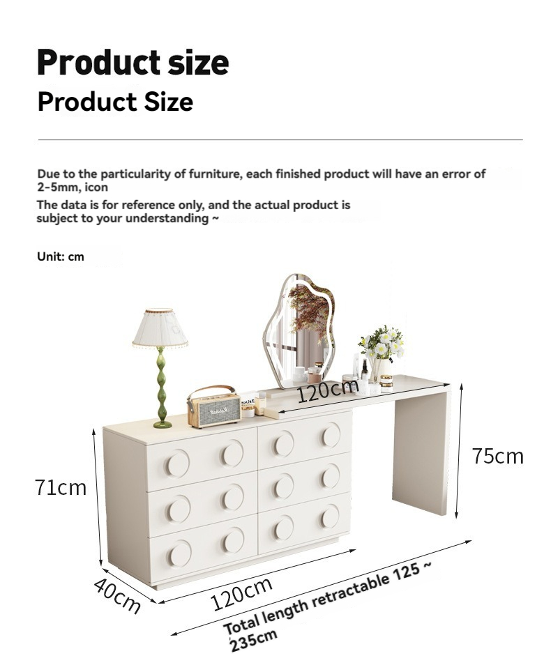 1.2m dresser (cloud mirror + carpet), 1.2m dresser + acrylic chair (cloud mirror + carpet)