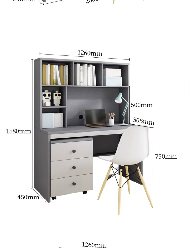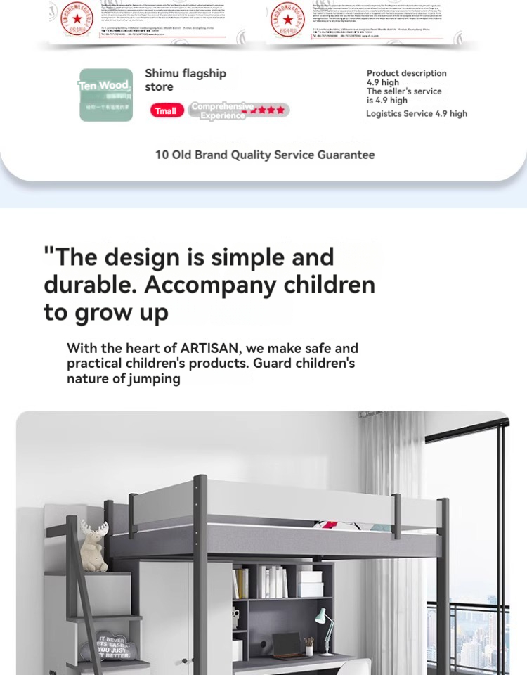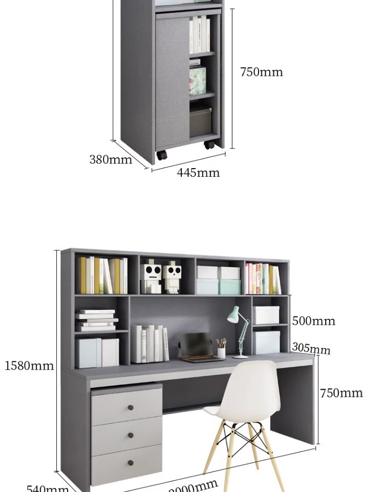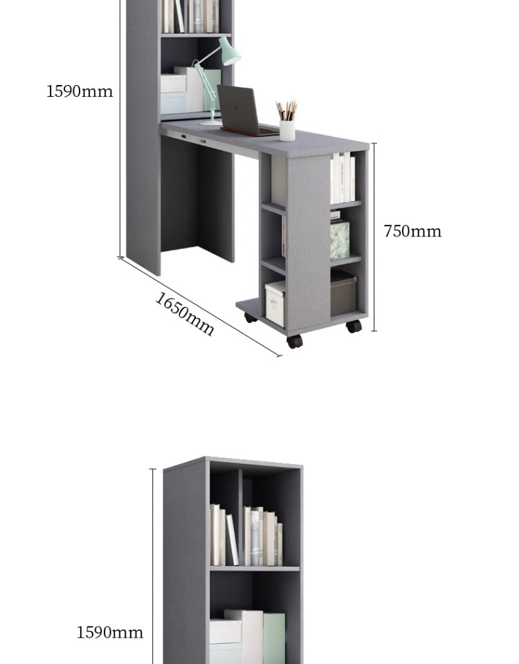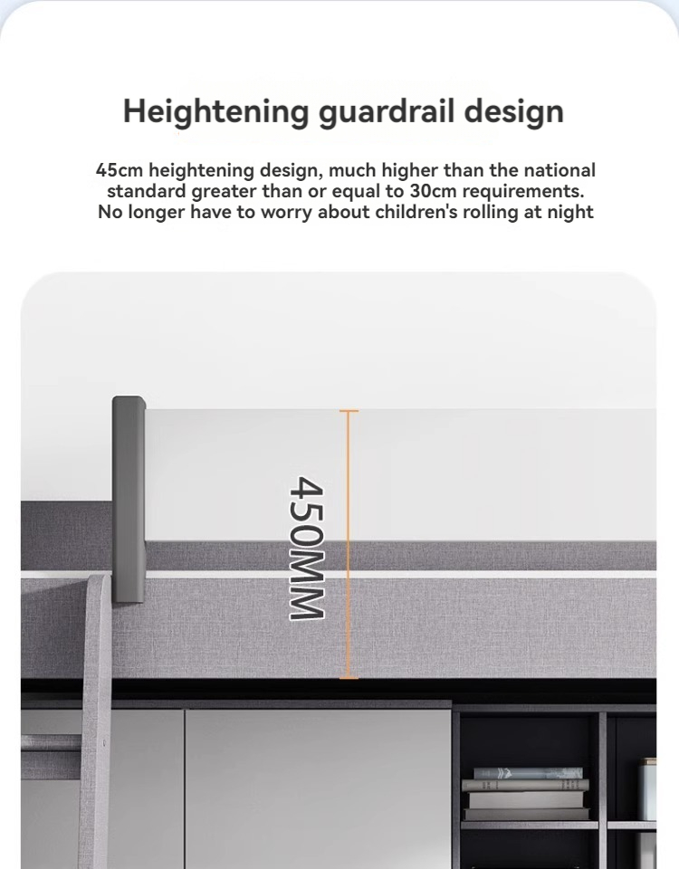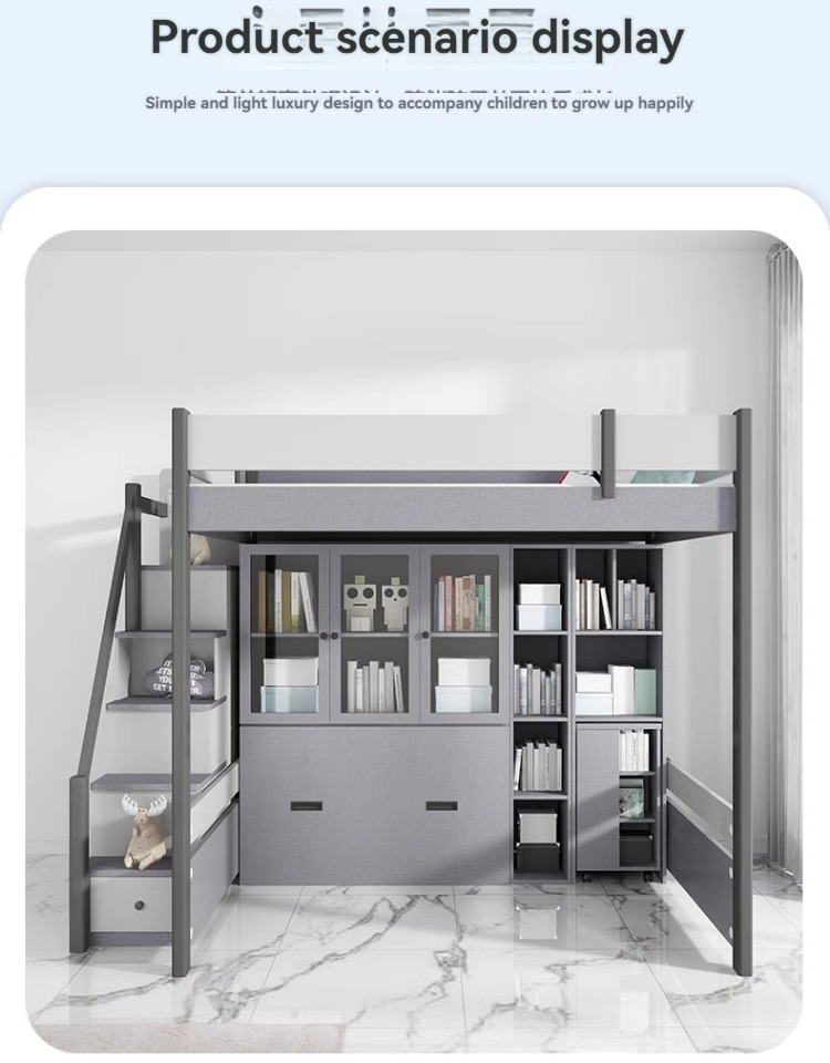 Ladder Cabinet/Cloth Grey】Shelf Bed+2m Desk 1200mm*2000mm