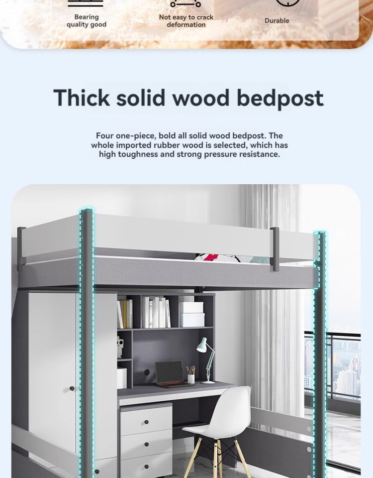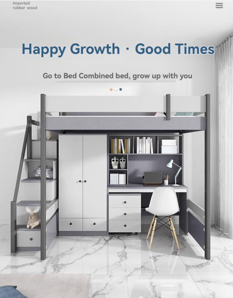 [Pre-order] Combination bed with bunk bed and desk for both adults and small households, solid wood bed pillars, high and low children's bunk bed with desk-Smart-Living [Pre-order] Combination bed with bunk bed and desk for both adults and small households, solid wood bed pillars, high and low children's bunk bed with desk-Smart-Living