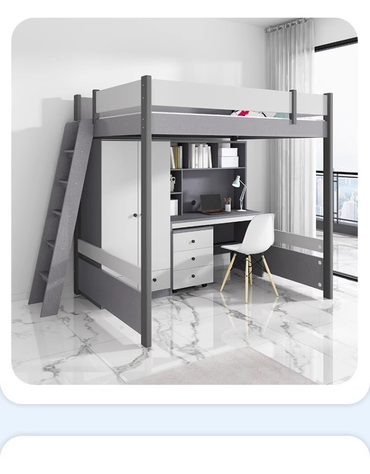 Ladder Climbing/Cloth Grey】Shelf Bed + Wardrobe + 1.2m Desk 1200mm*2000mm