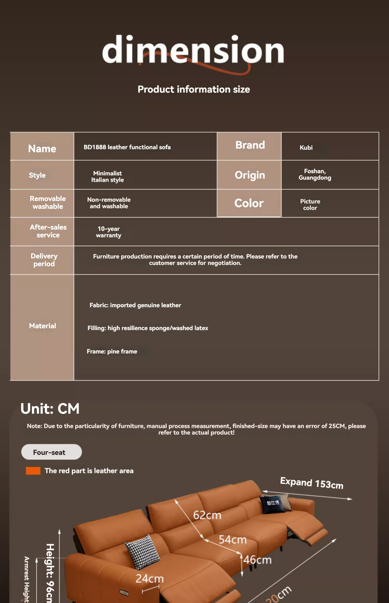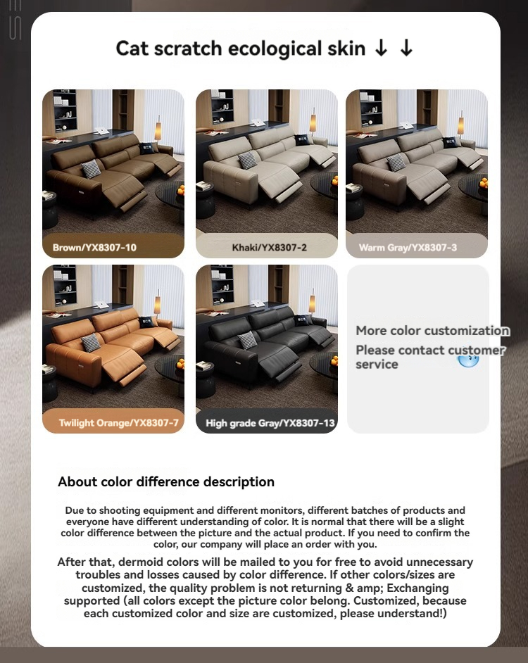 Color classification [Premium upgraded version] 2.6-meter three seater dual electric function position Italian imported leather (original slurry washed latex+high elasticity sponge) [Premium upgraded version] 3.2-meter four seater dual electric function position Italian imported leather (original slurry washed latex+high elasticity sponge)