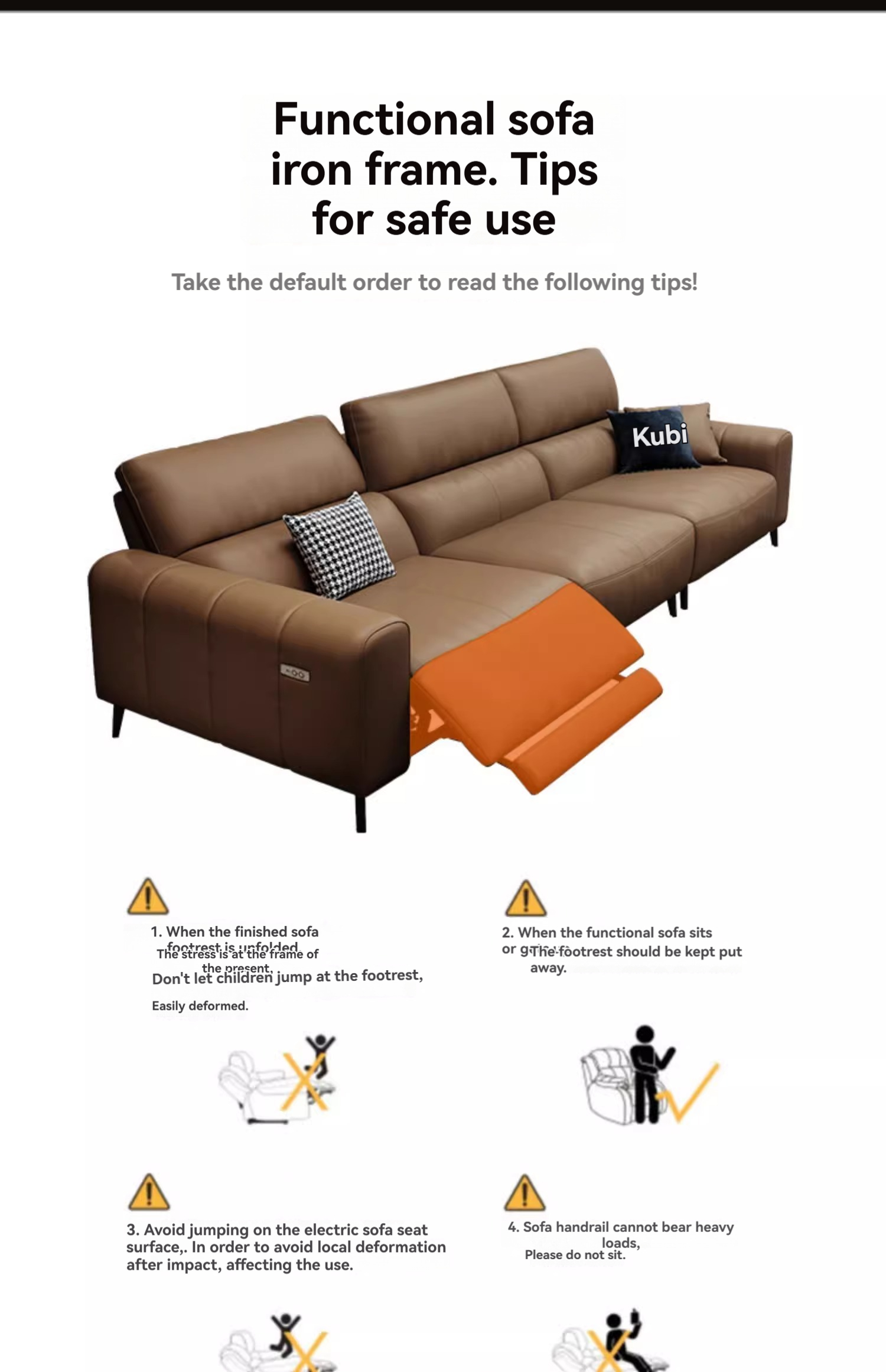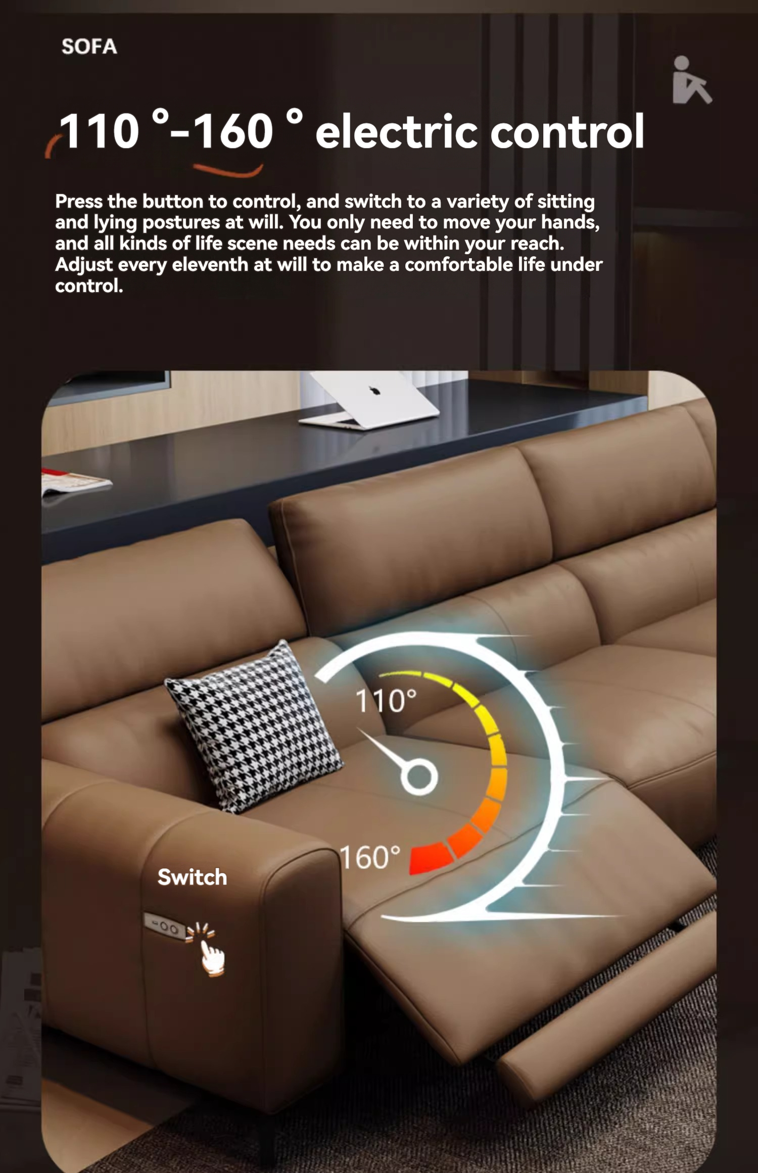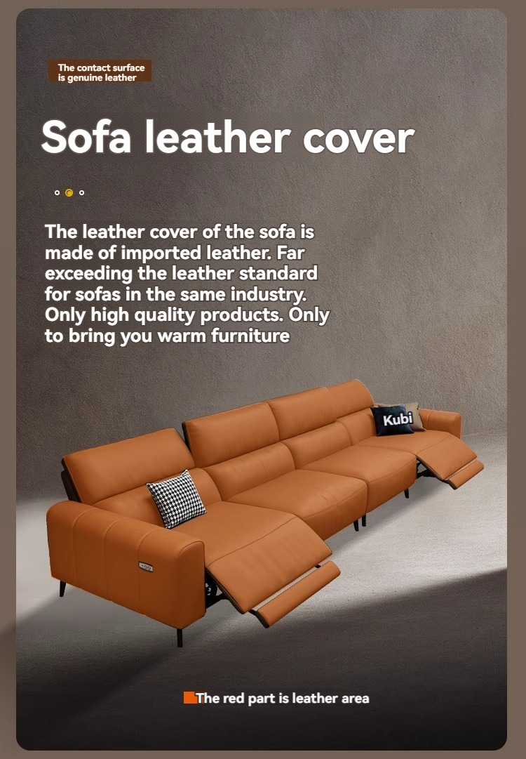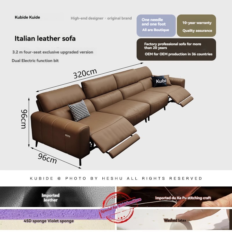 【 Exclusive Upgraded Version 】 3.2-meter four seater dual electric function position Italian imported leather (original slurry washed latex+high elasticity sponge)