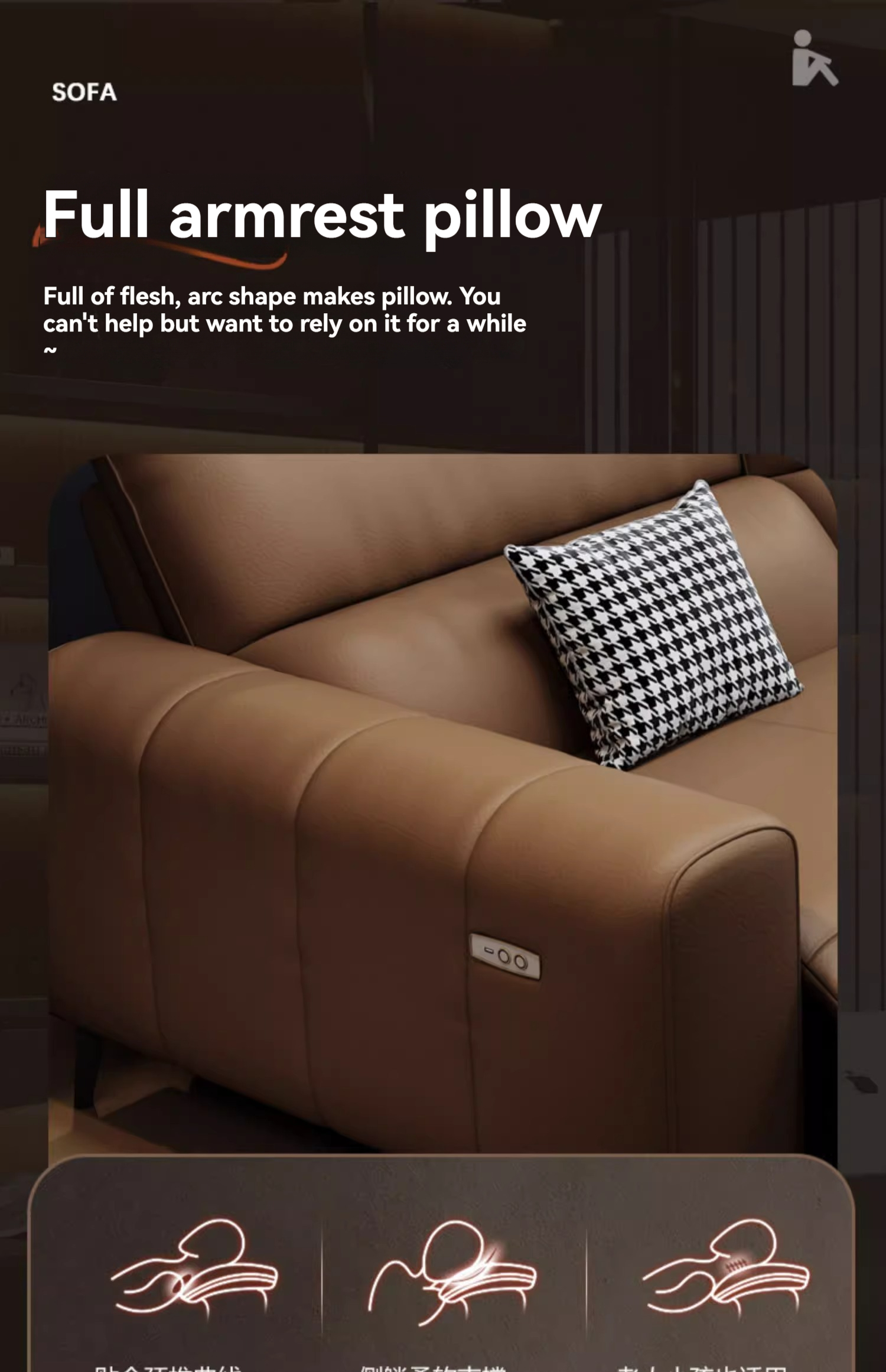 【 Exclusive Upgraded Version 】 2.6-meter three seater dual electric function position Italian imported leather (original slurry washed latex+high elasticity sponge)