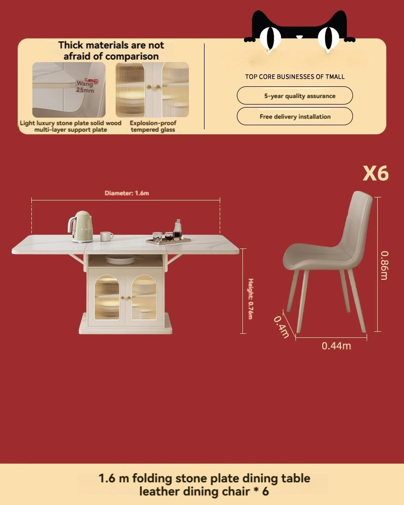 WX Solid Wood-218 Glass Door Multifunctional Folding Dining Table