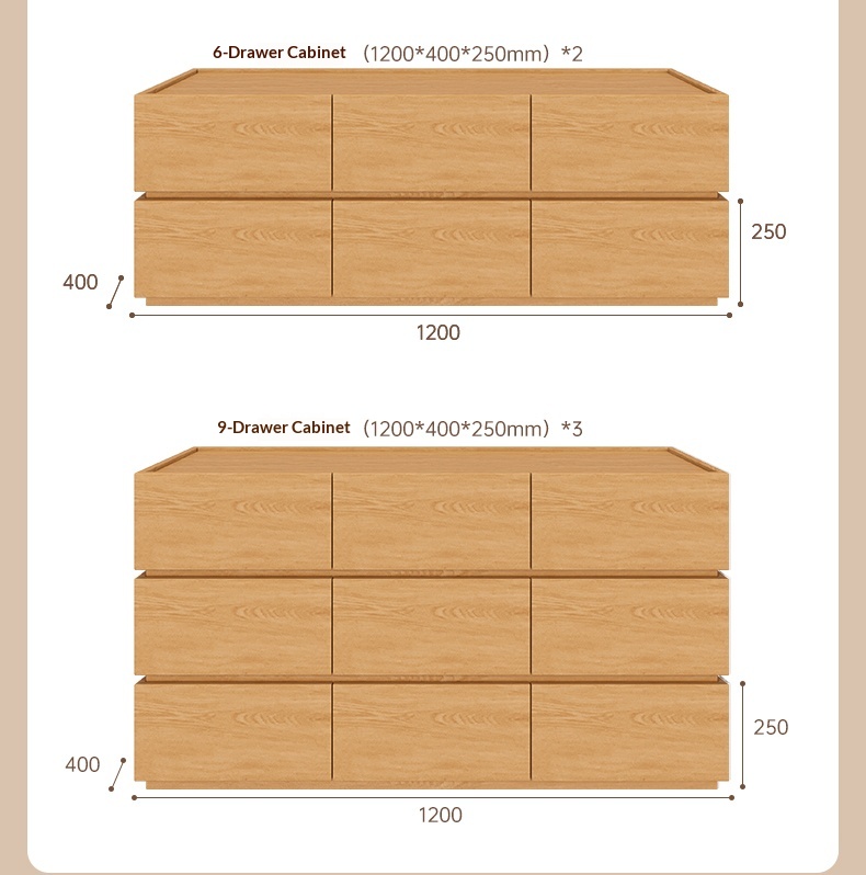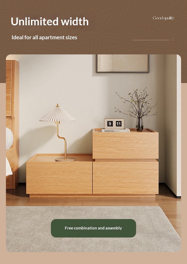 Oak bedroom storage bedside table cube-shaped 9-drawer chest