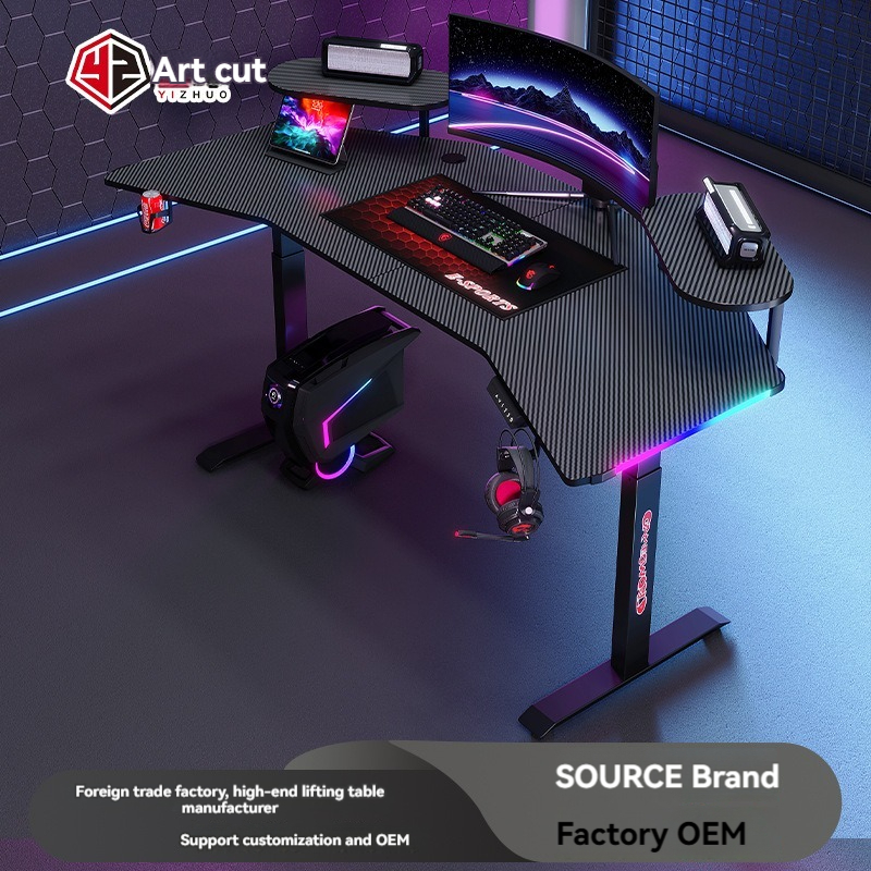 [Pre-order] Factory wholesale carbon fibre RGB lift gaming desk desktop desk cross-border foreign trade anchor game computer desk
