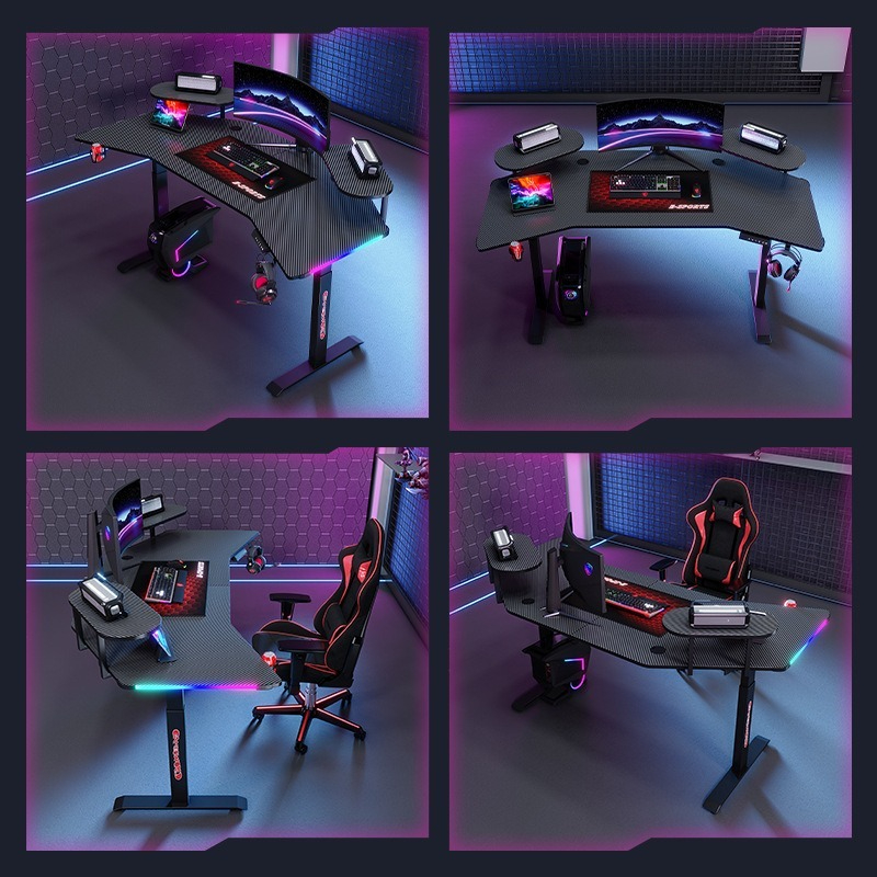 [Pre-order]  Factory wholesale carbon fibre RGB lift gaming desk desktop desk cross-border foreign trade anchor game computer desk-Smart-Living