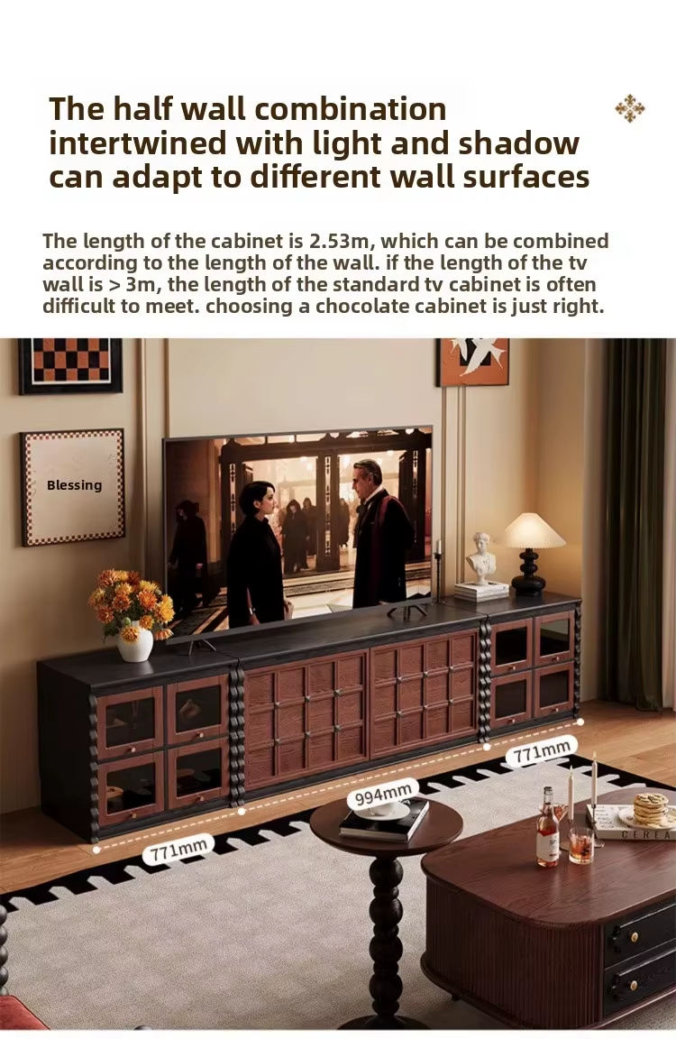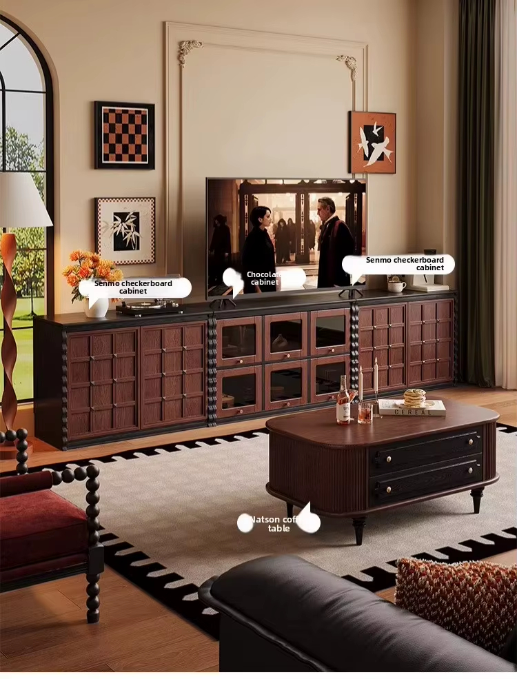 [PRE-ORDER] French Retro Solid Wood Floor-to-Ceiling Combination TV & Bedside Cabinet Antique Style Display Storage
