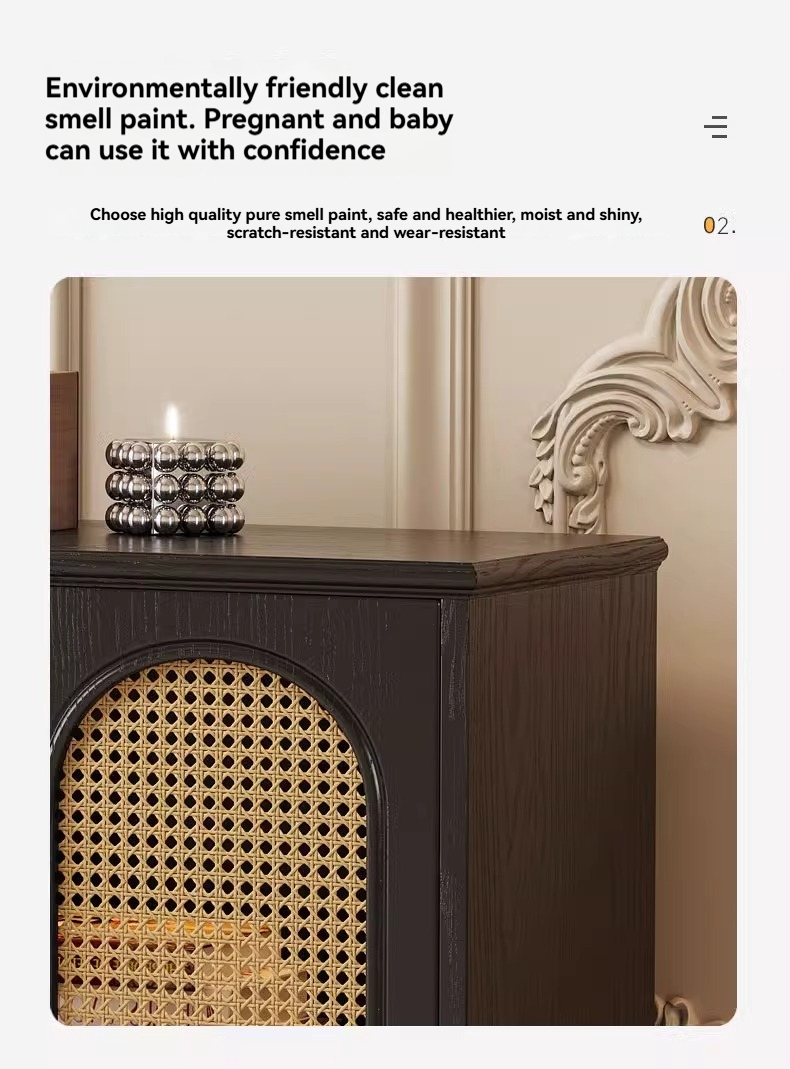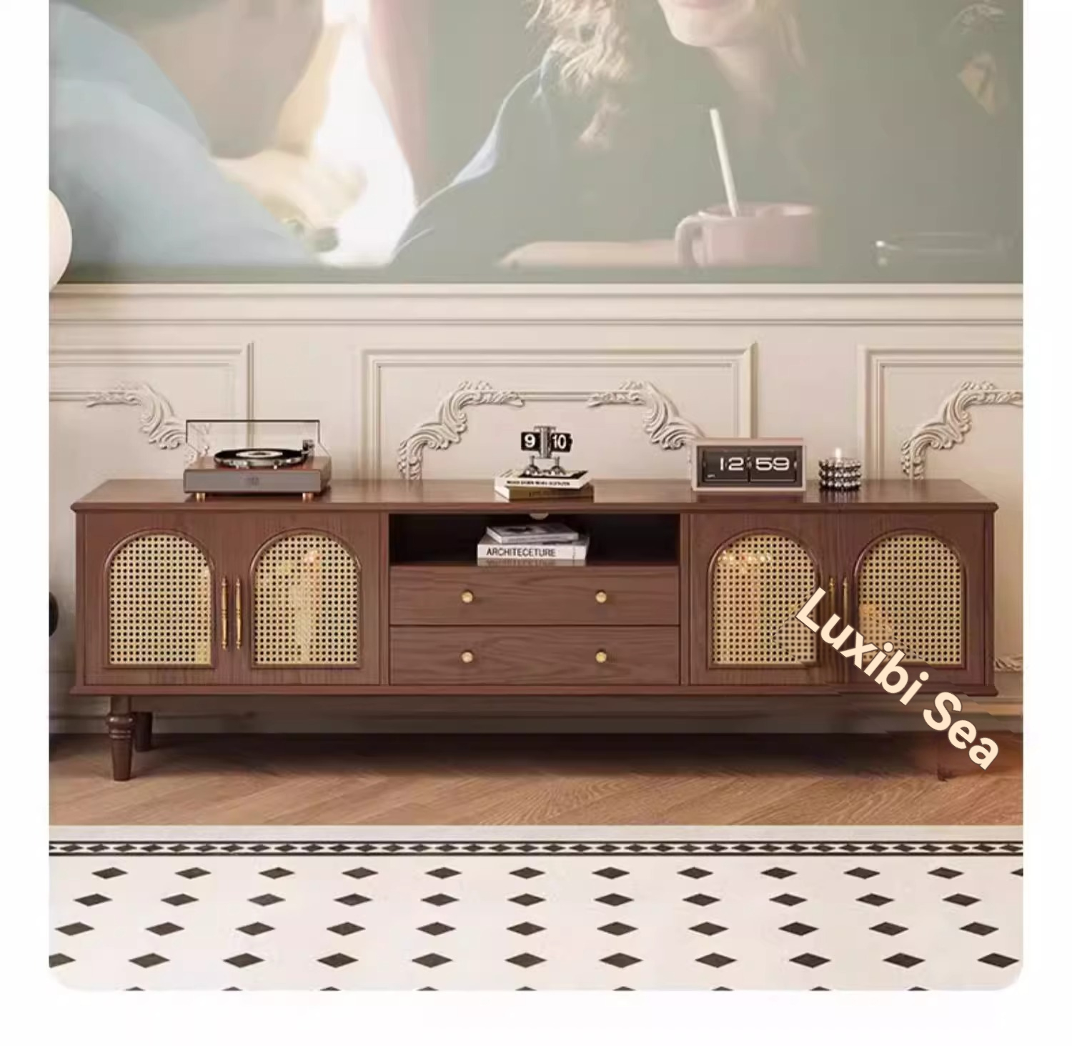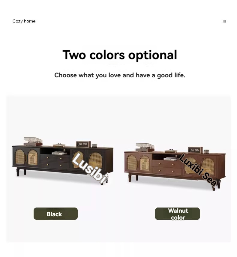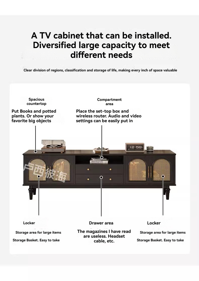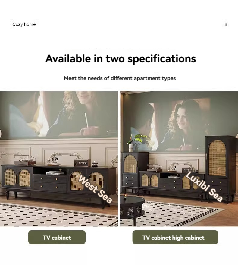 [pre order]French retro solid wood TV cabinet, small apartment, high vintage bedroom design, rattan TV cabinet-Smart-Living [pre order]French retro solid wood TV cabinet, small apartment, high vintage bedroom design, rattan TV cabinet-Smart-Living