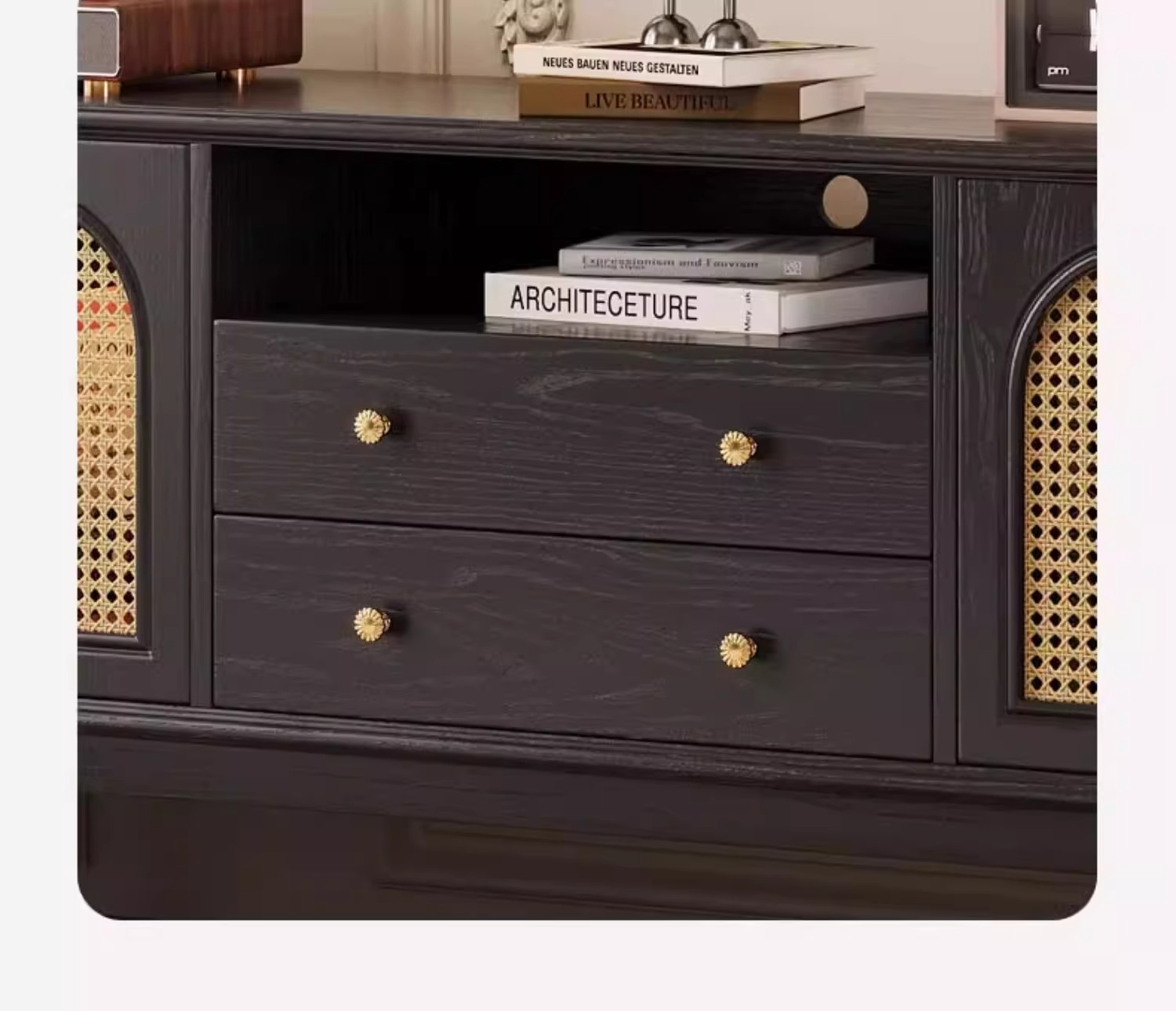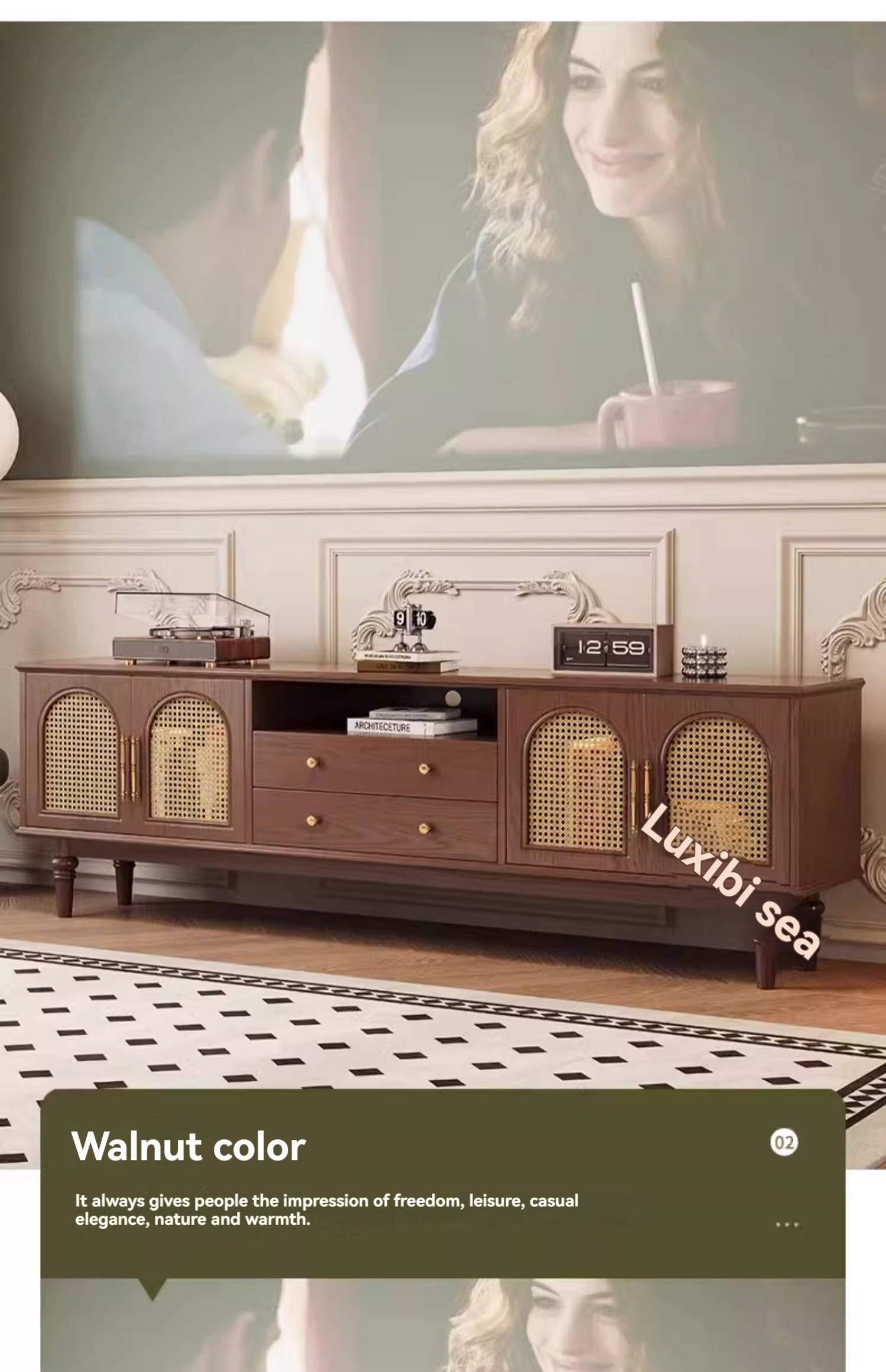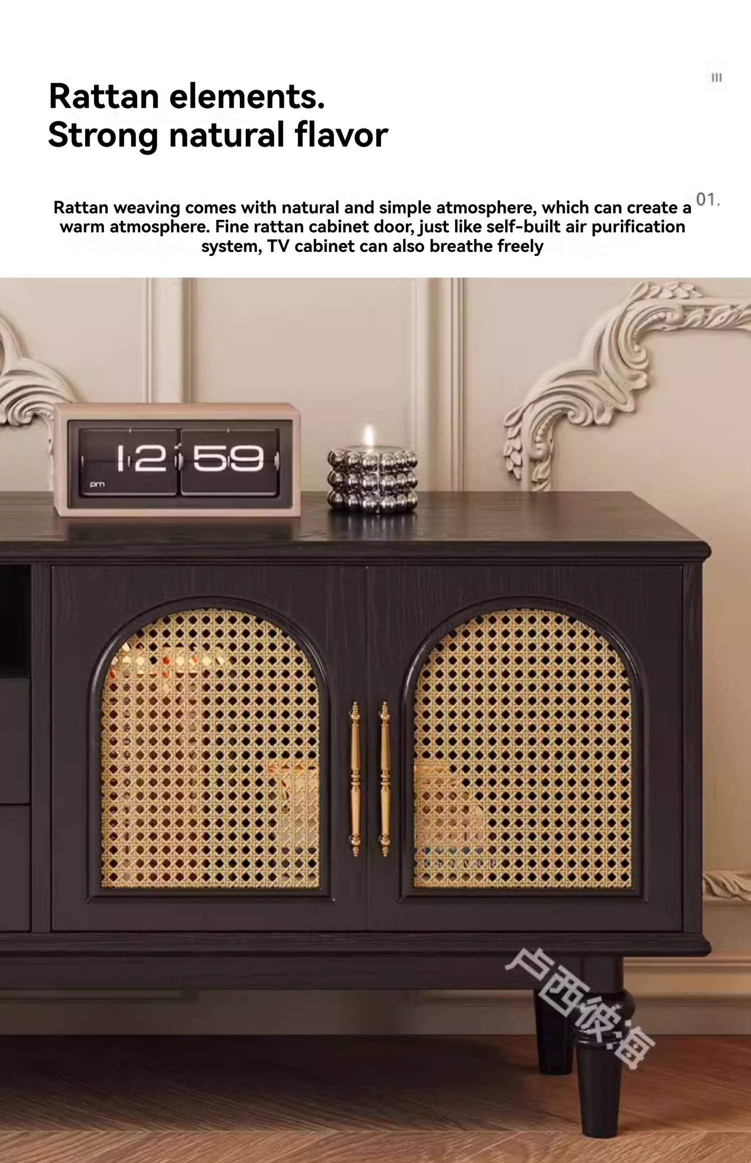 [pre order]French retro solid wood TV cabinet, small apartment, high vintage bedroom design, rattan TV cabinet-Smart-Living [pre order]French retro solid wood TV cabinet, small apartment, high vintage bedroom design, rattan TV cabinet-Smart-Living