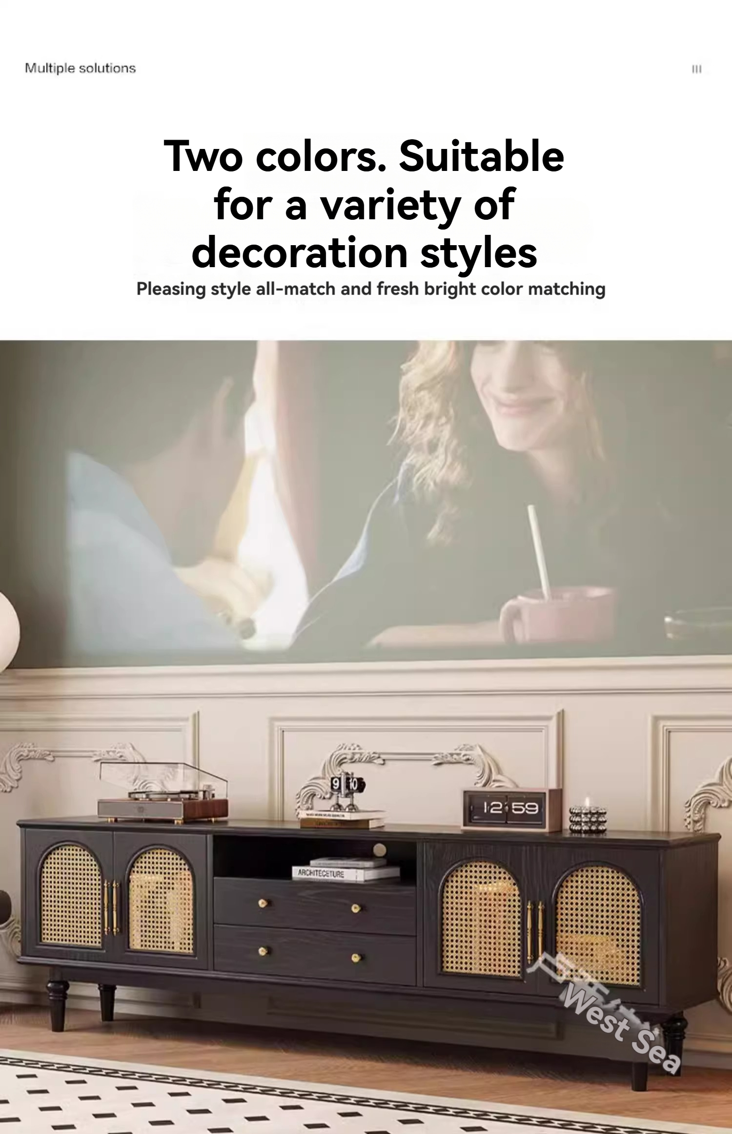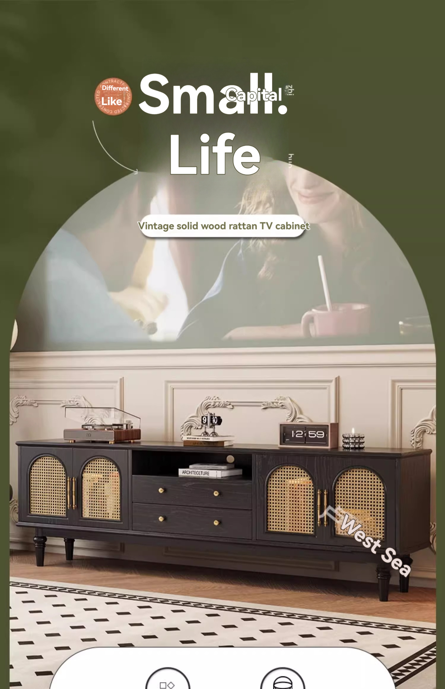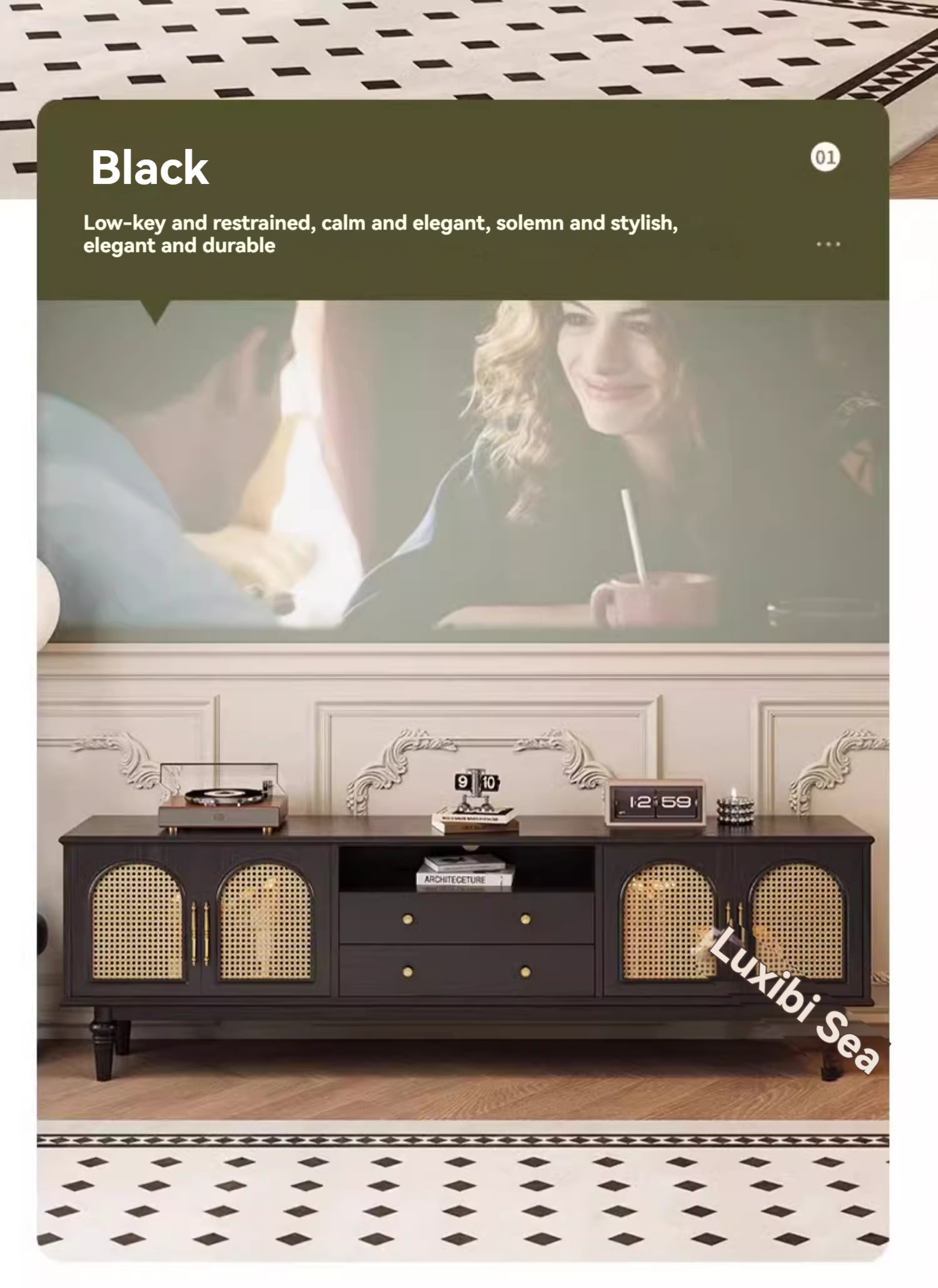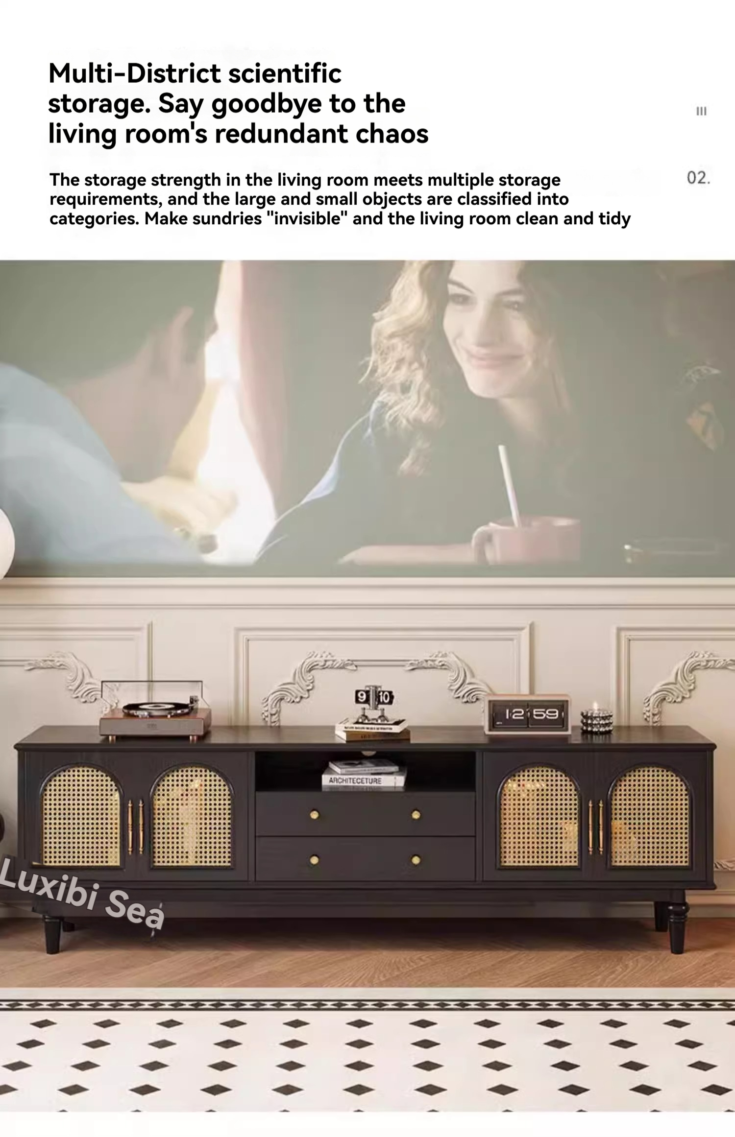 [pre order]French retro solid wood TV cabinet, small apartment, high vintage bedroom design, rattan TV cabinet-Smart-Living [pre order]French retro solid wood TV cabinet, small apartment, high vintage bedroom design, rattan TV cabinet-Smart-Living
