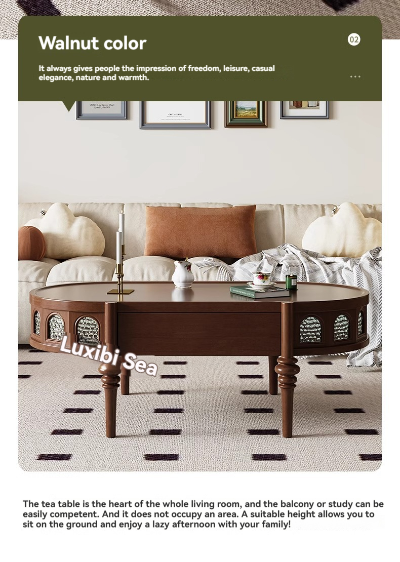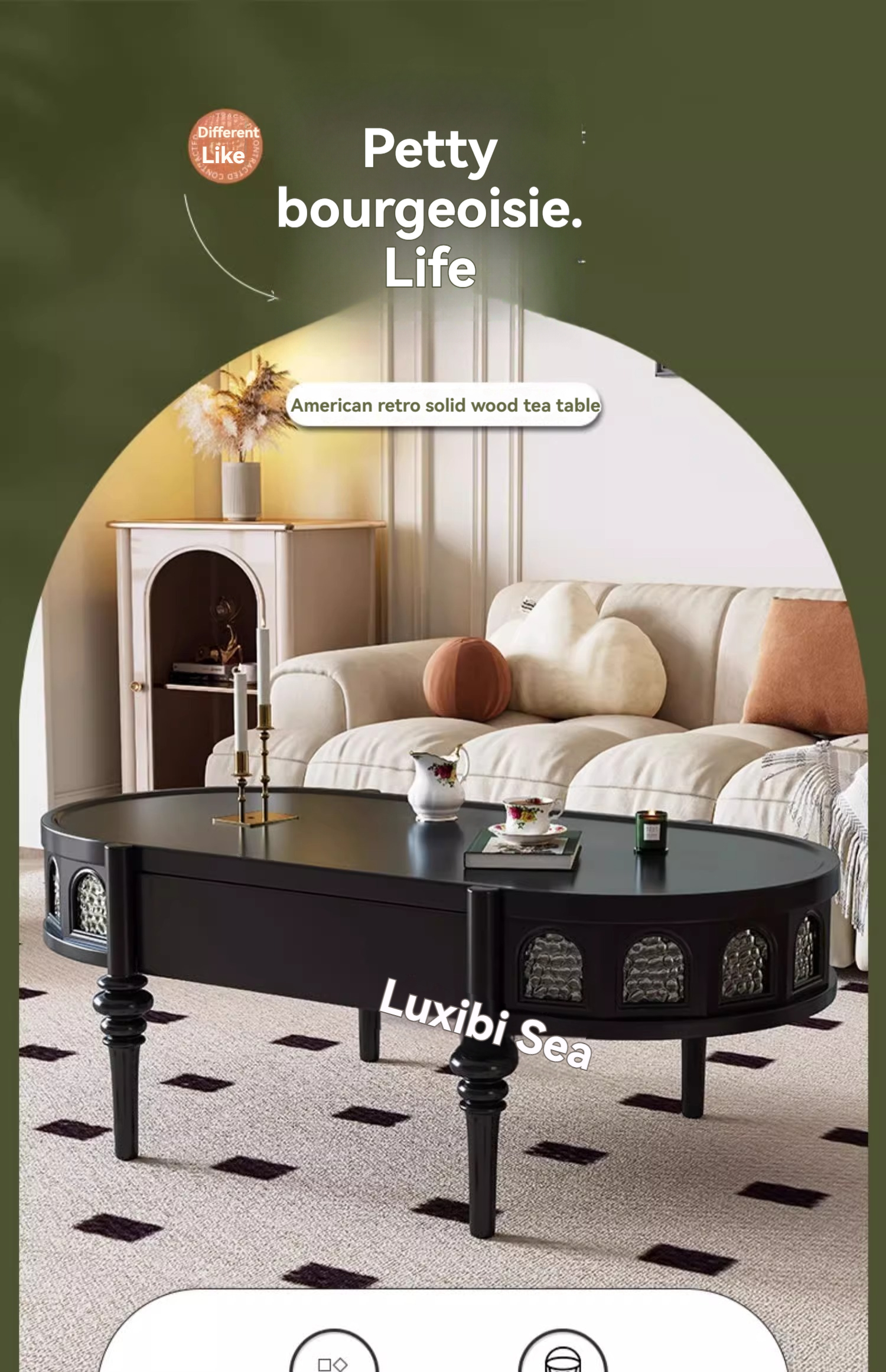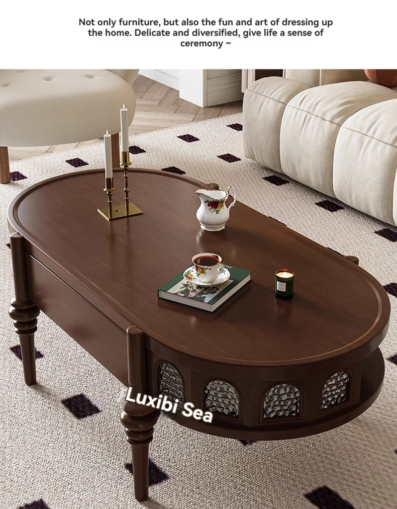[pre order]French vintage solid wood coffee table living room home small apartment design design small table round coffee table-Smart-Living [pre order]French vintage solid wood coffee table living room home small apartment design design small table round coffee table-Smart-Living