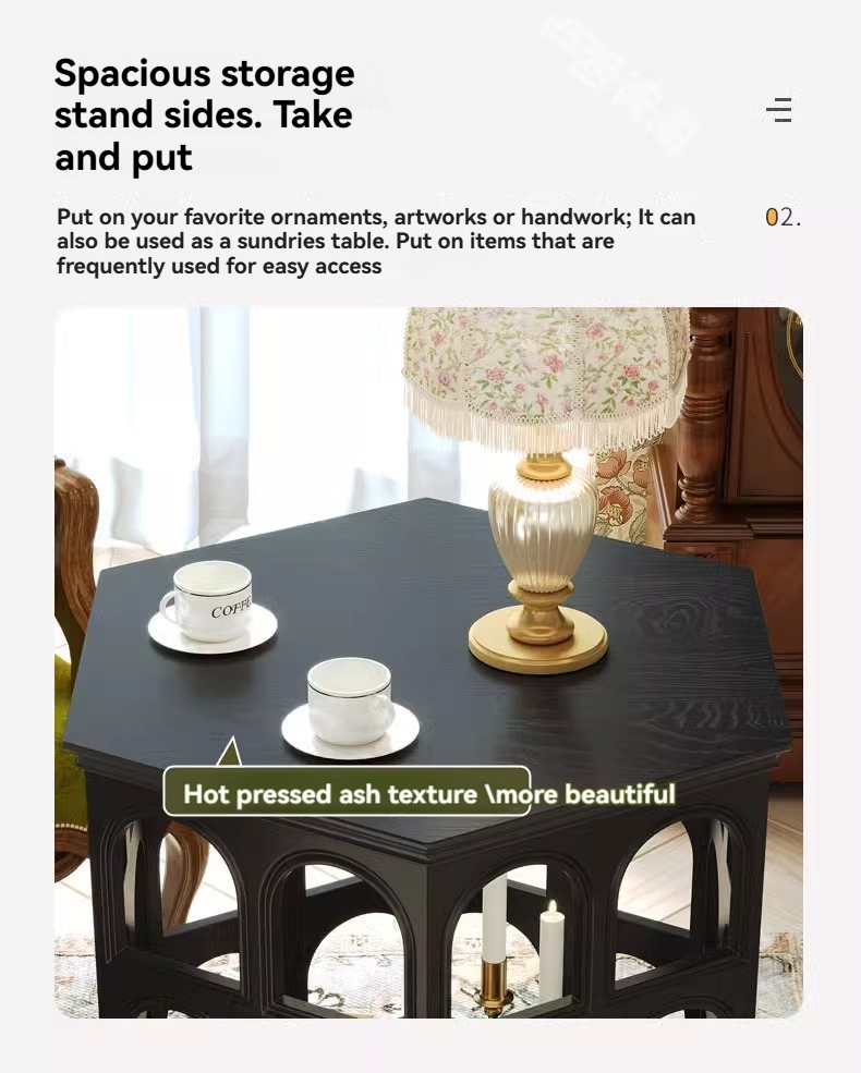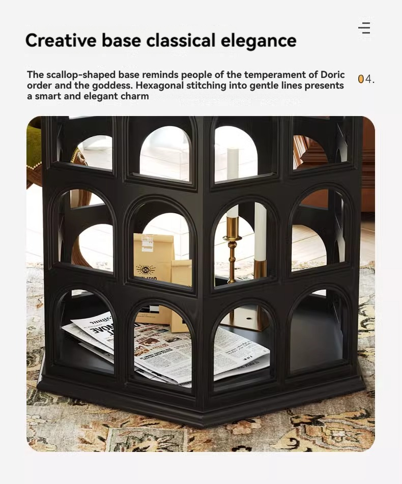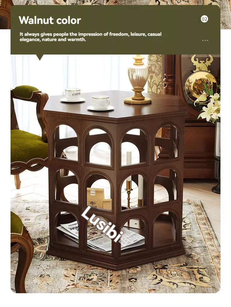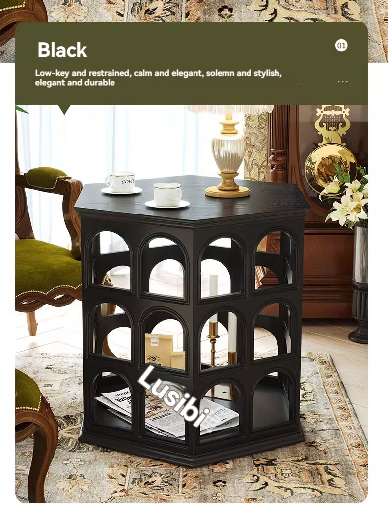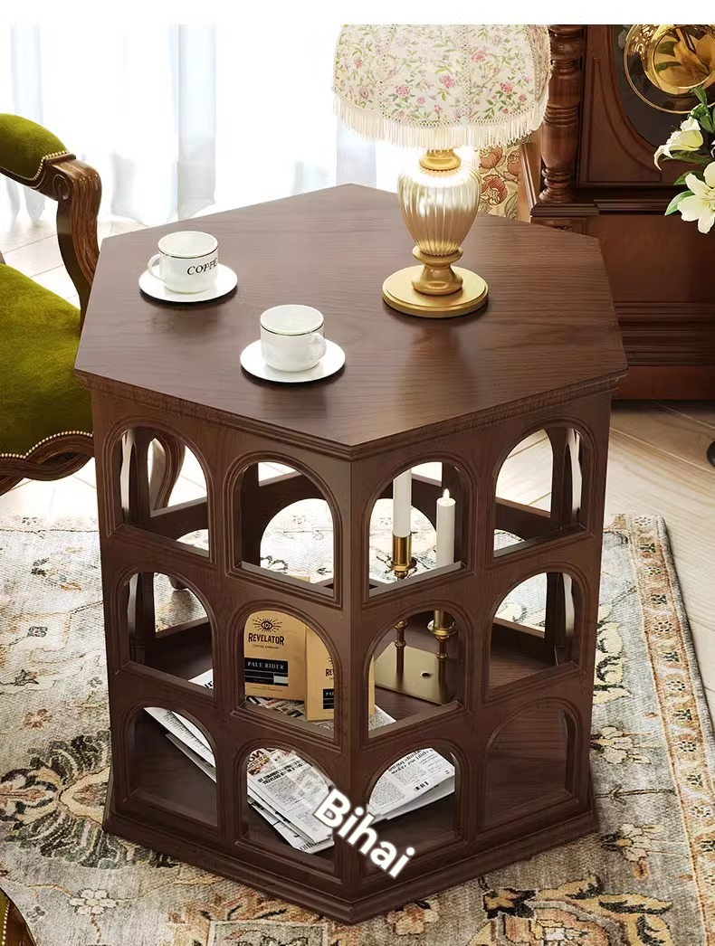 [pre order]French vintage solid wood round arch coffee table, cut-out side table, hexagonal sofa side table