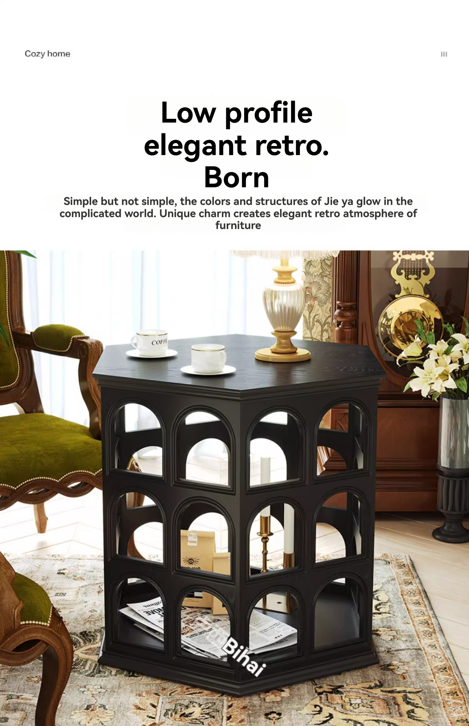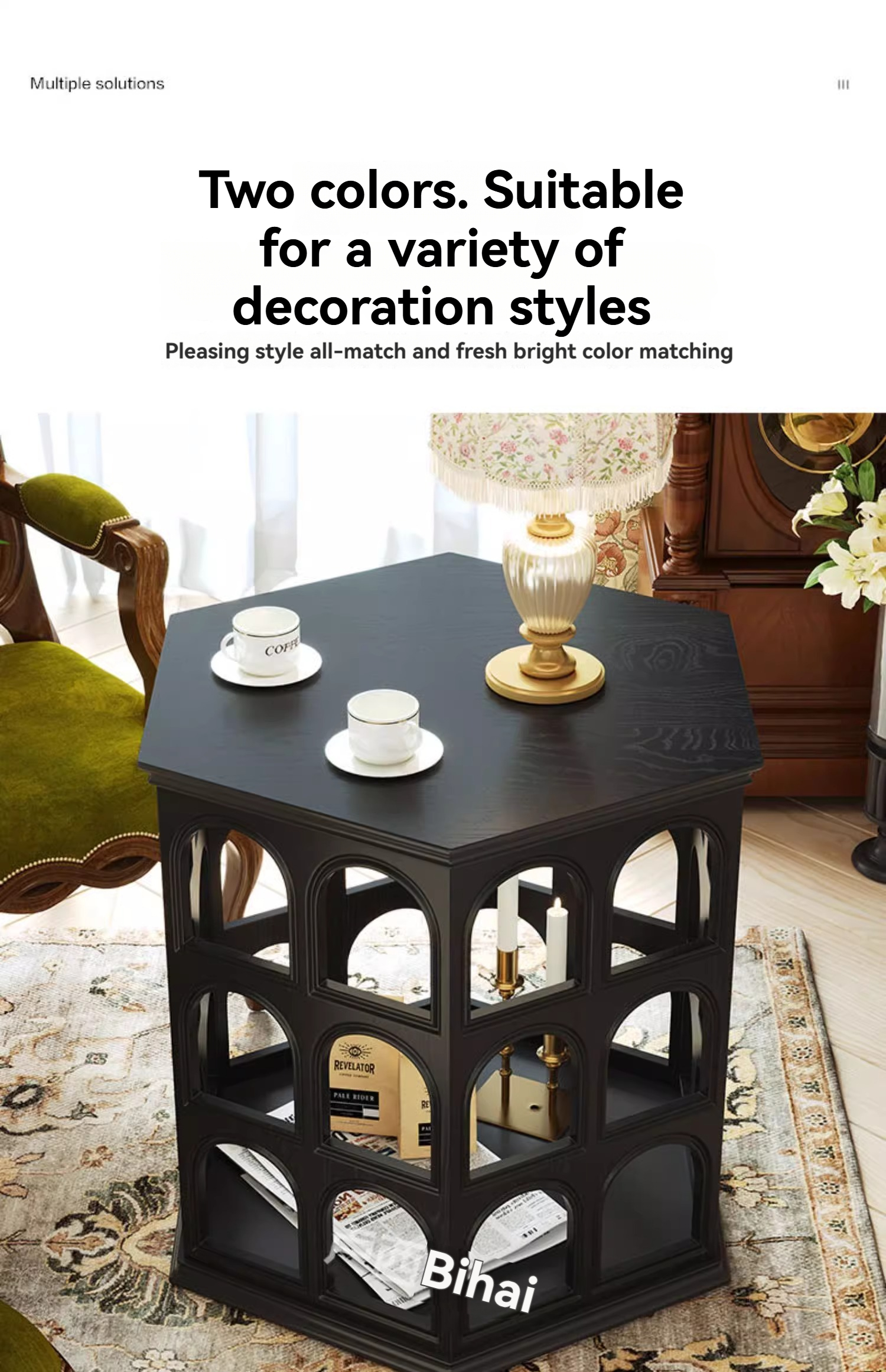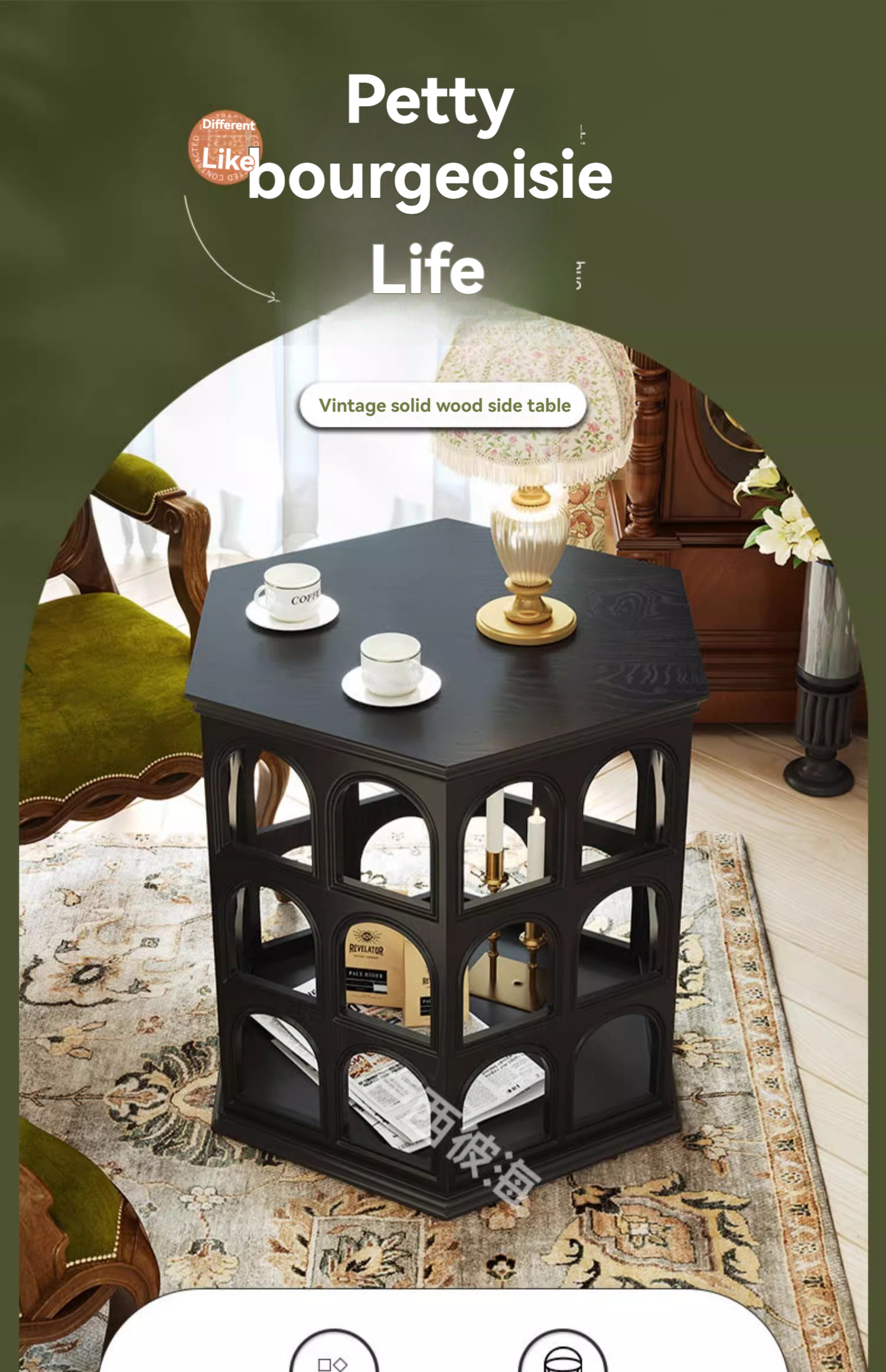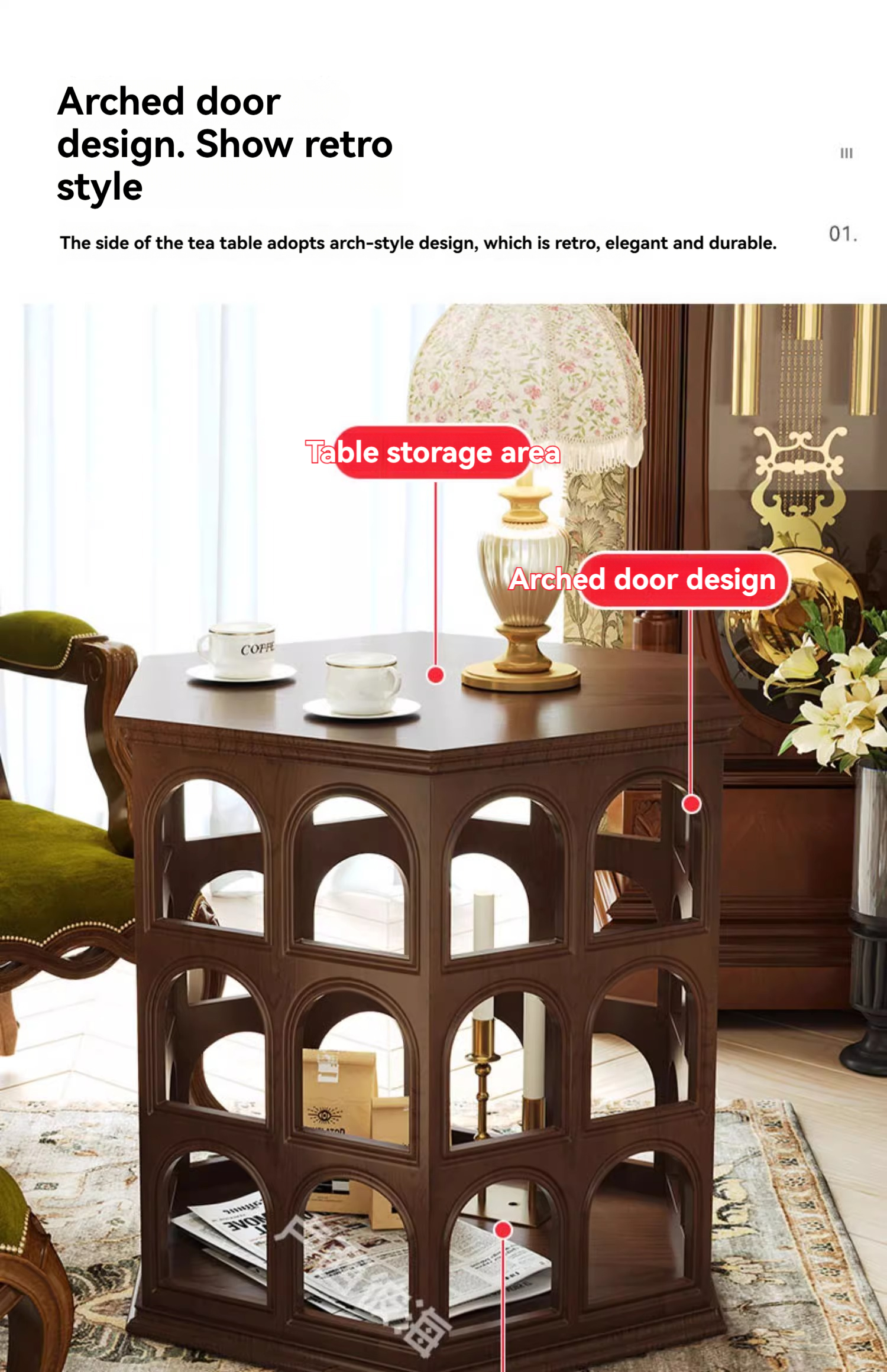 [pre order]French vintage solid wood round arch coffee table, cut-out side table, hexagonal sofa side table
