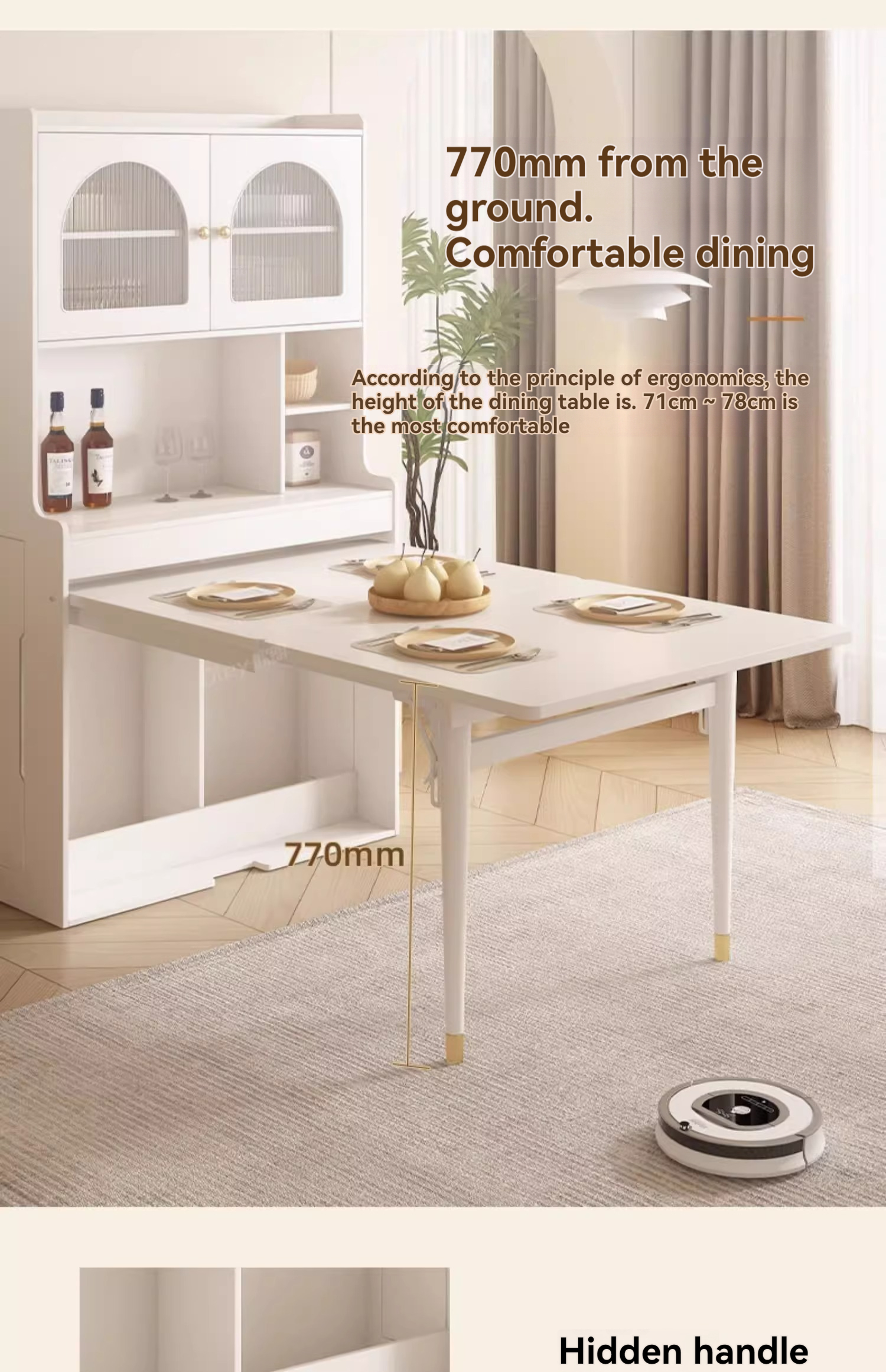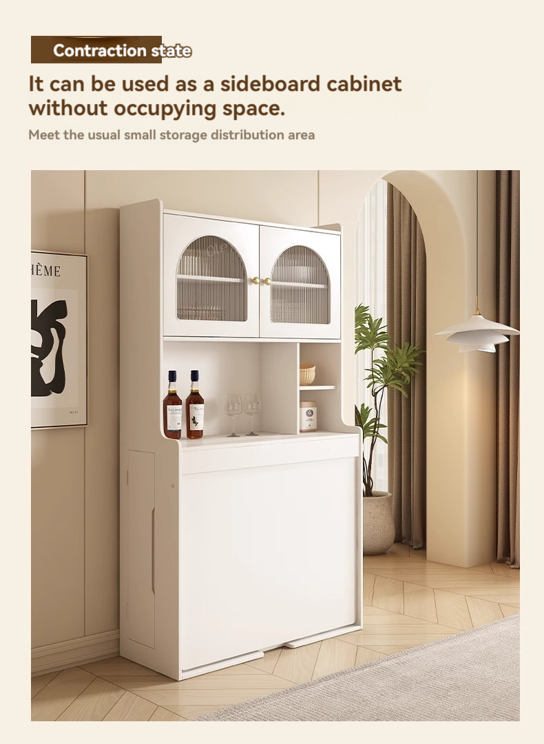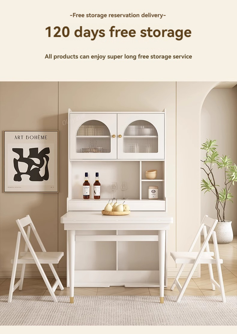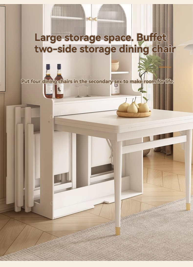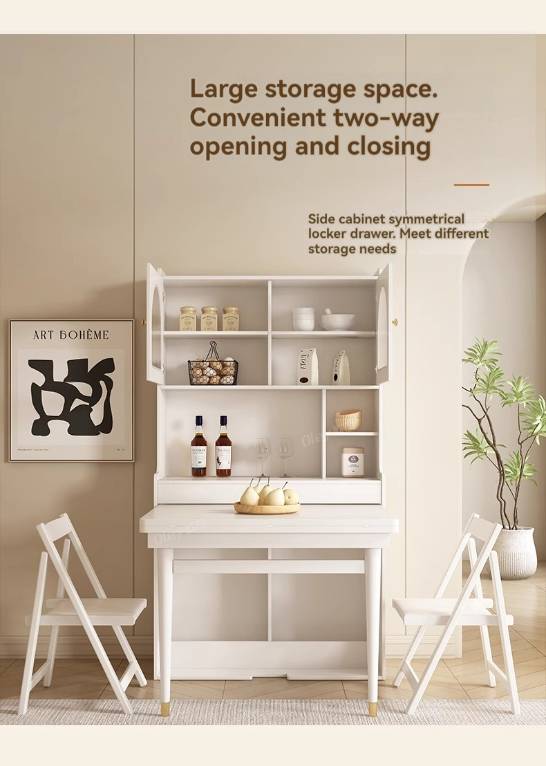 [Pre-order] Oulang French Cream Style Solid Wood Folding Dining Table and Chair Combination Simple and Modern Integrated Dining Side Cabinet Island Table-Smart-Living [Pre-order] Oulang French Cream Style Solid Wood Folding Dining Table and Chair Combination Simple and Modern Integrated Dining Side Cabinet Island Table-Smart-Living