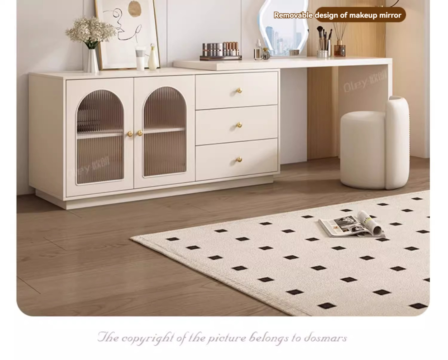 - __ulti-layer solid wood material_1.2m cream style dresser + sideboard + high-end leather stool.