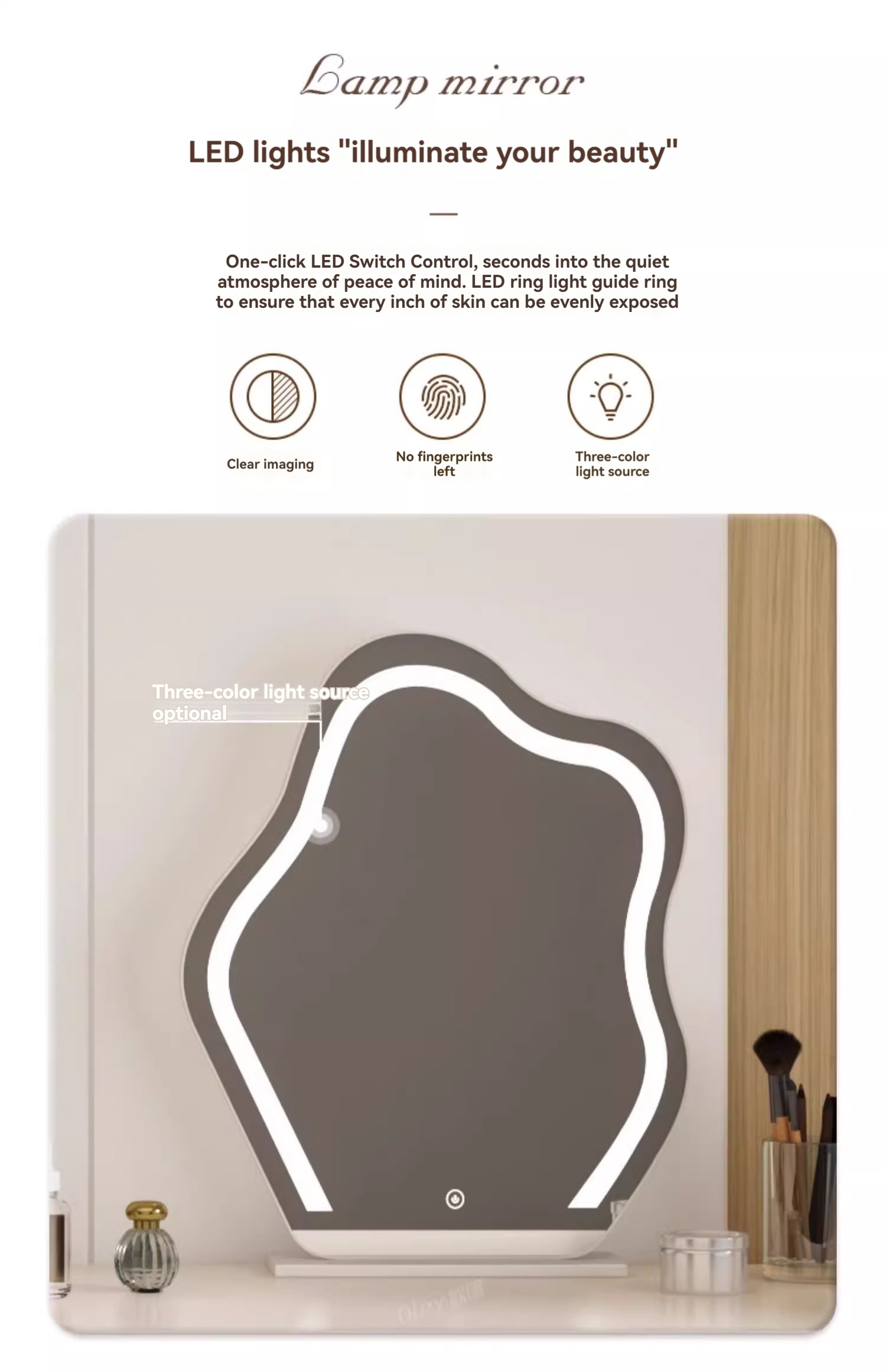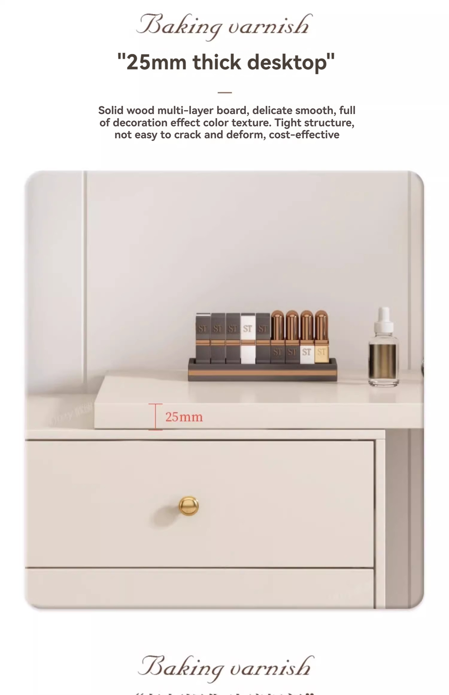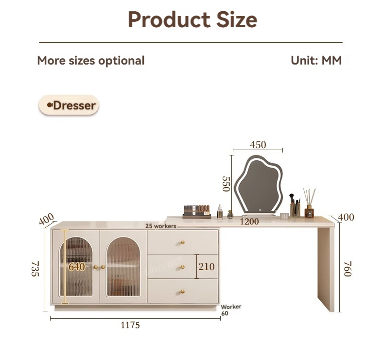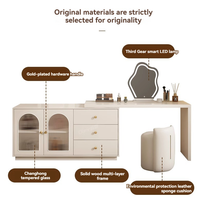 - __ulti-layer solid wood material_1.2m cream style dresser + sideboard + LED smart cloud mirror + high-end leather makeup stool.