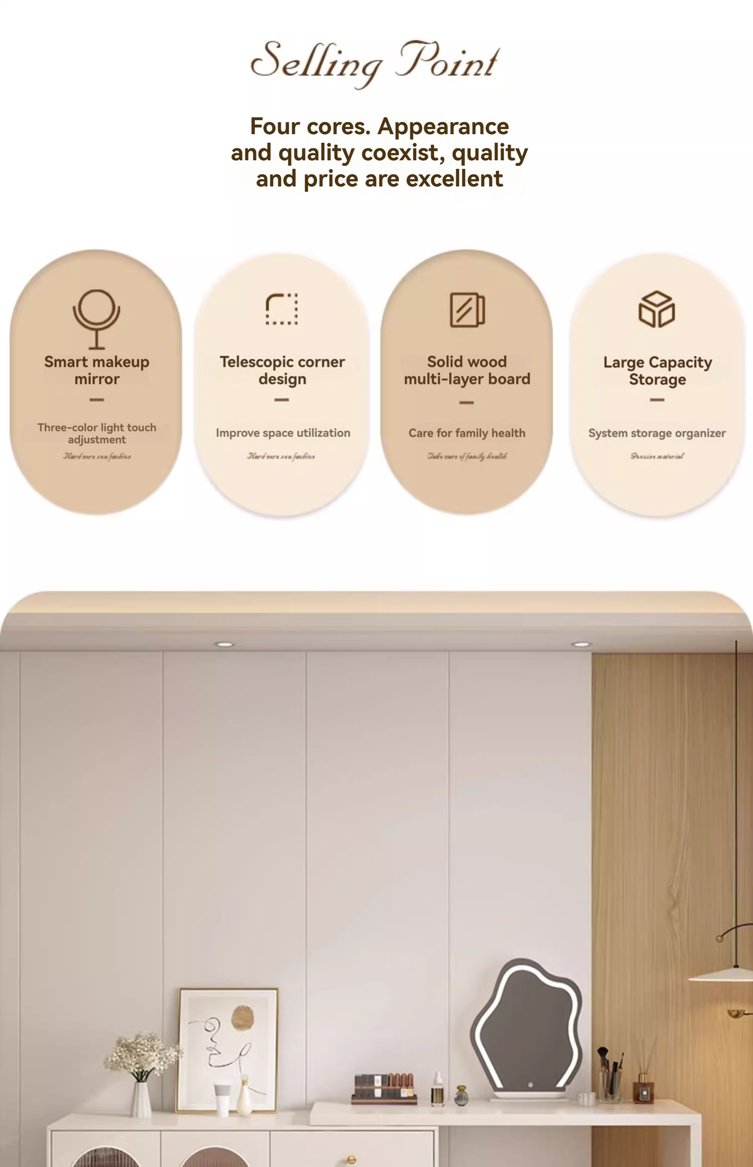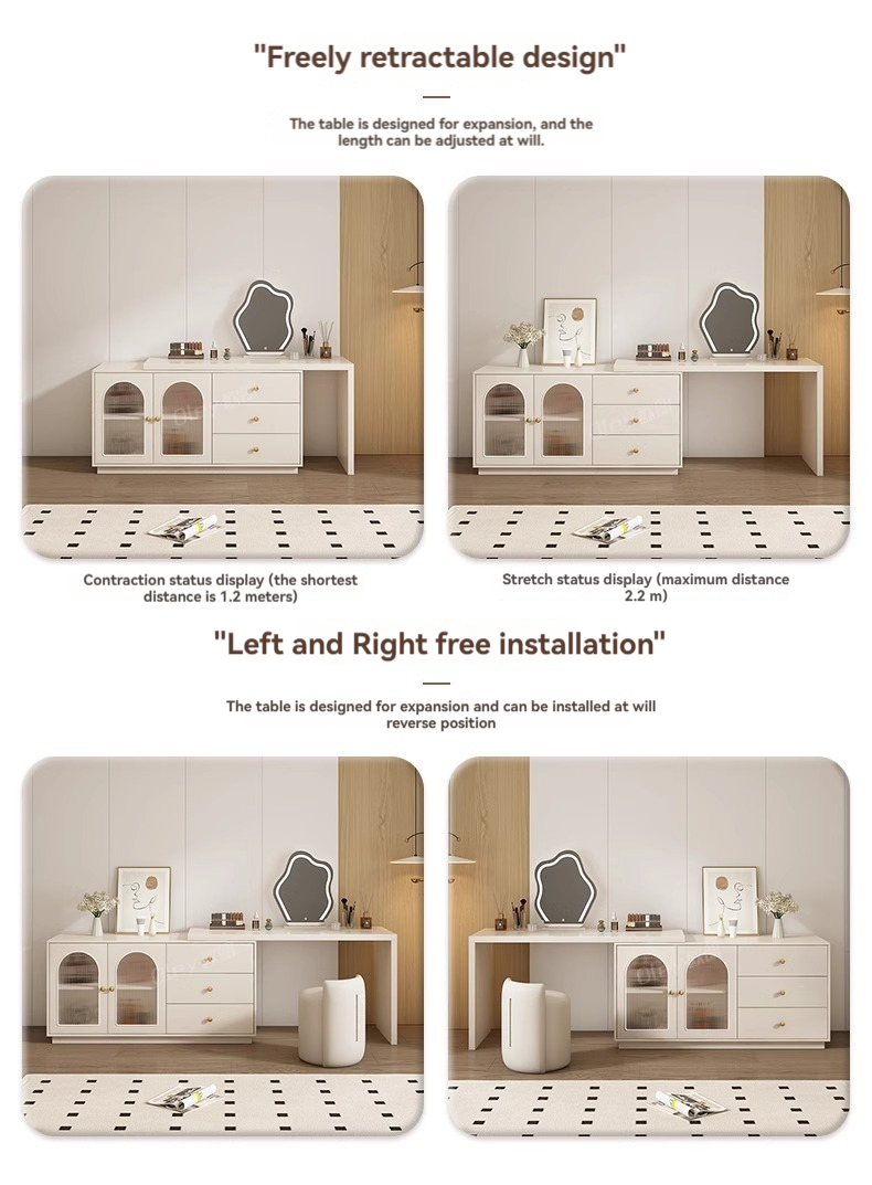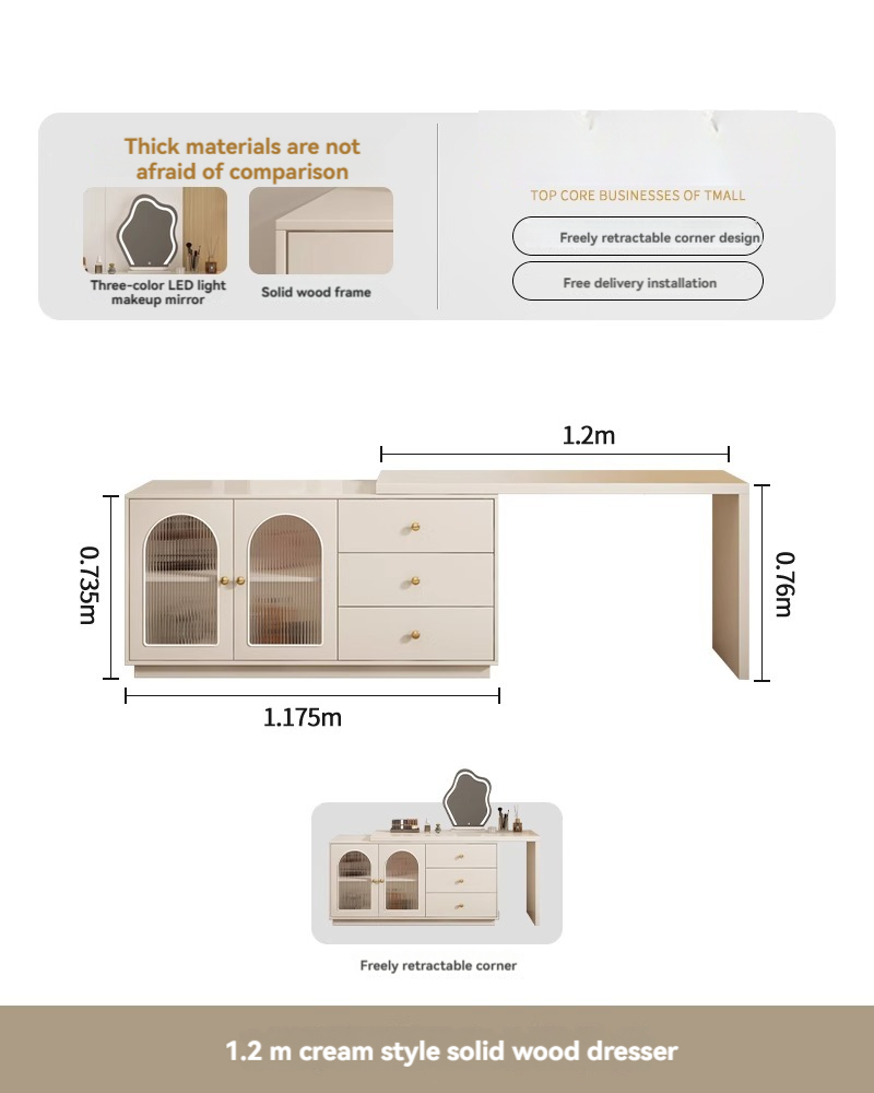 - __ulti-layer solid wood material_1.2m cream style dresser + sideboard + LED smart cloud mirror.