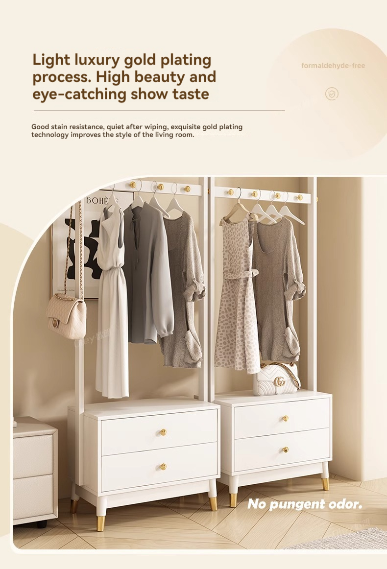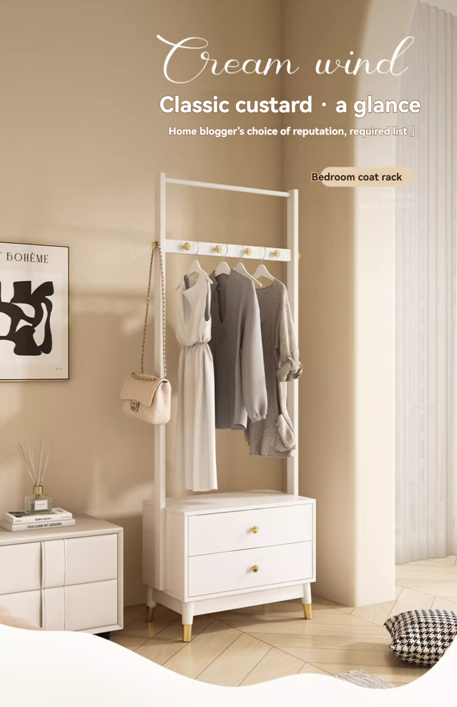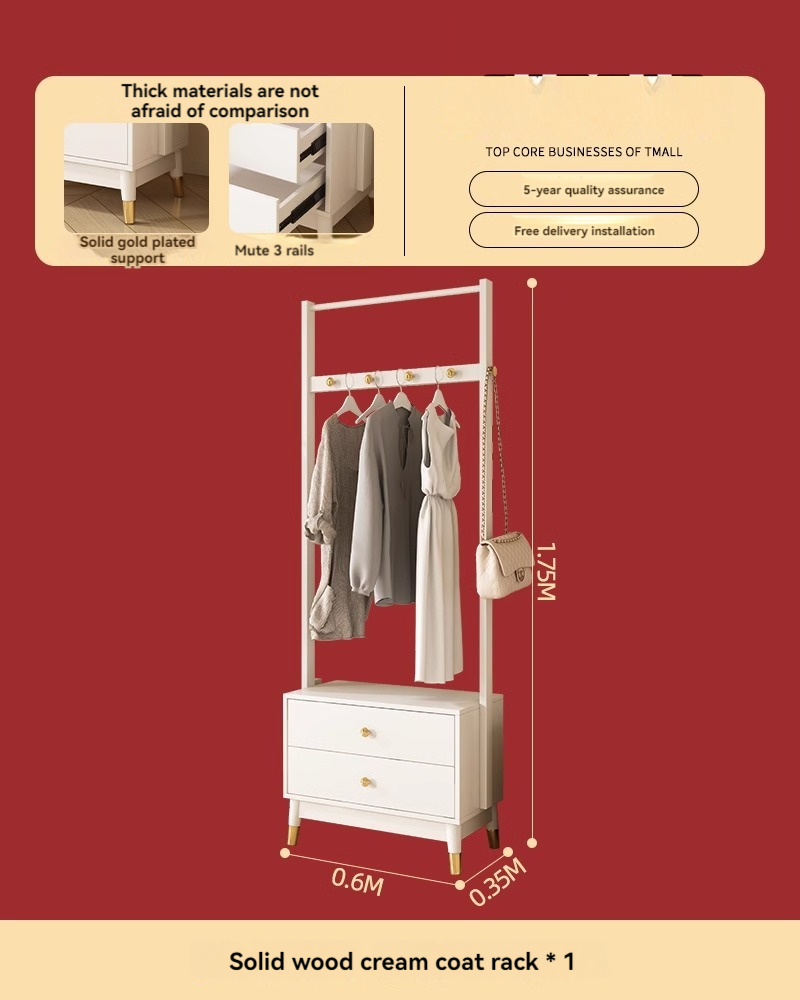 [Pre-order] Oulang 2024 solid wood cream style floor standing multifunctional coat rack, simple and modern home bedroom hanging clothes rack storage-Smart-Living [Pre-order] Oulang 2024 solid wood cream style floor standing multifunctional coat rack, simple and modern home bedroom hanging clothes rack storage-Smart-Living