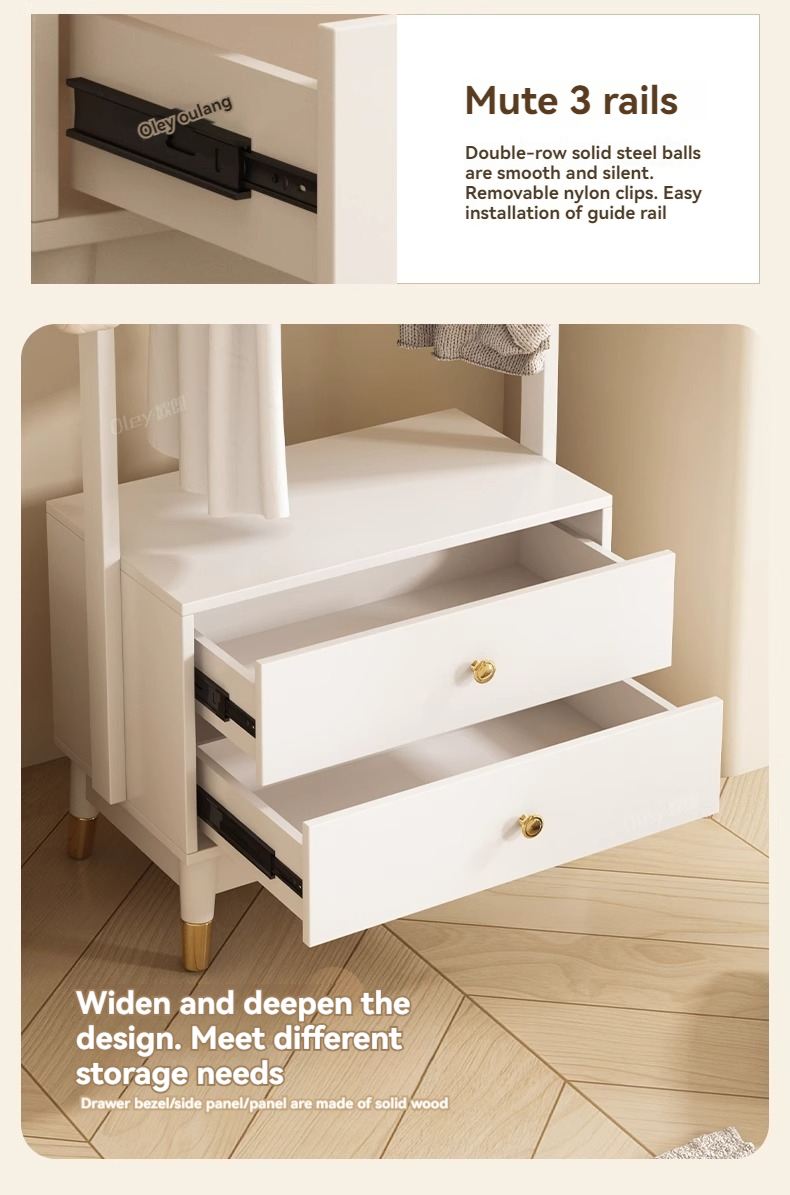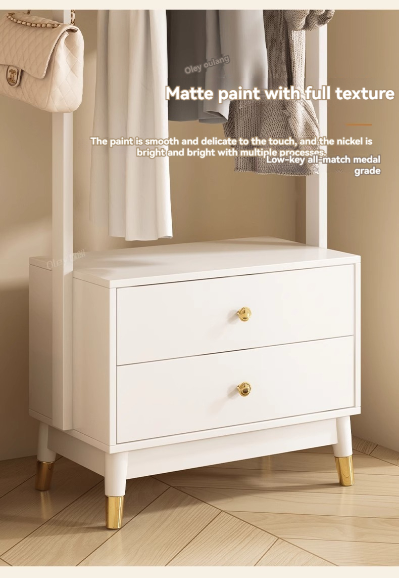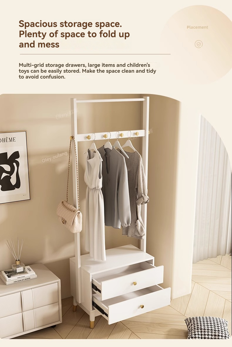 [Pre-order] Oulang 2024 solid wood cream style floor standing multifunctional coat rack, simple and modern home bedroom hanging clothes rack storage-Smart-Living