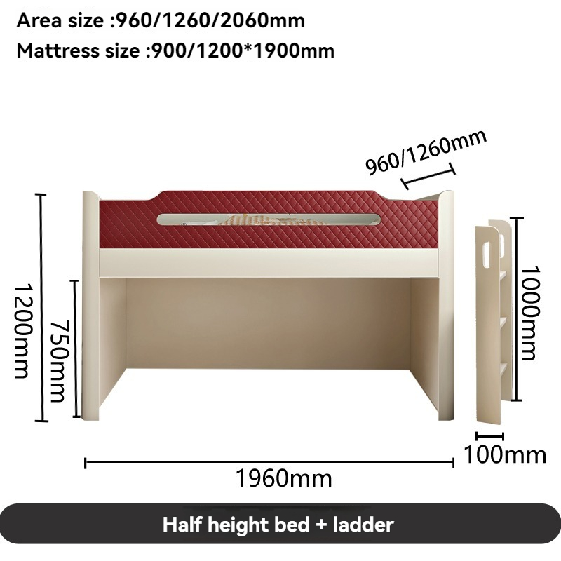 1.2*1.9 half-height bed + ladder + desk+1.2*1.9 m mattress
