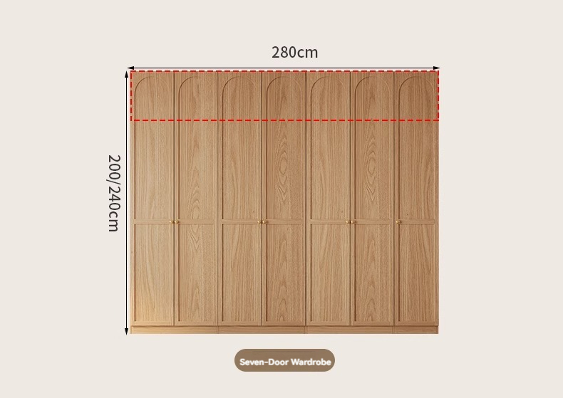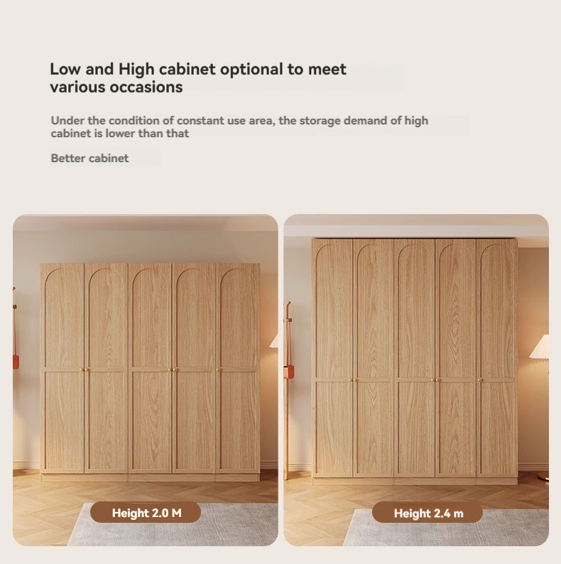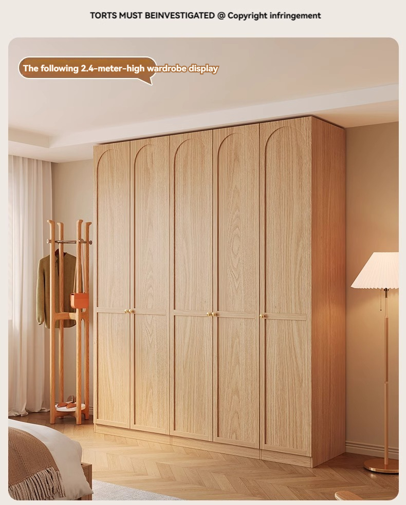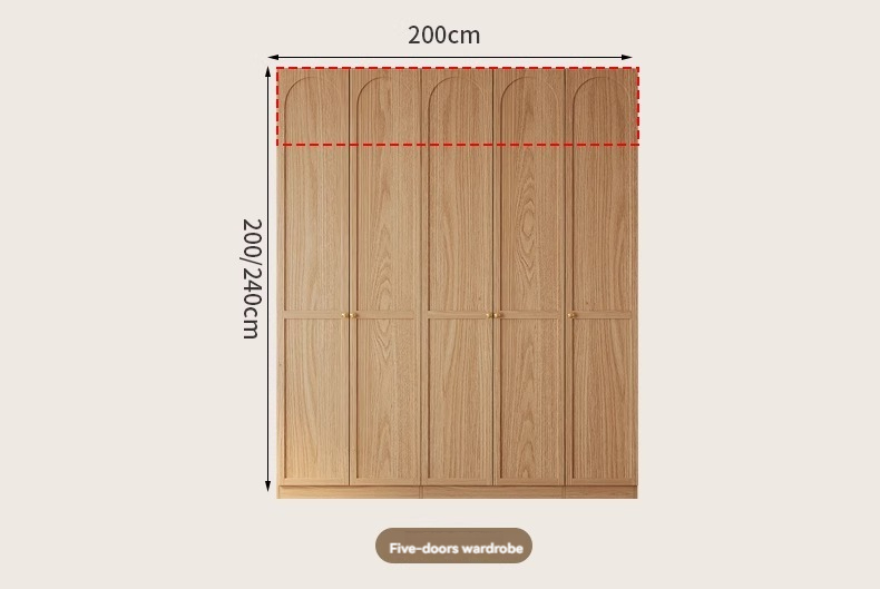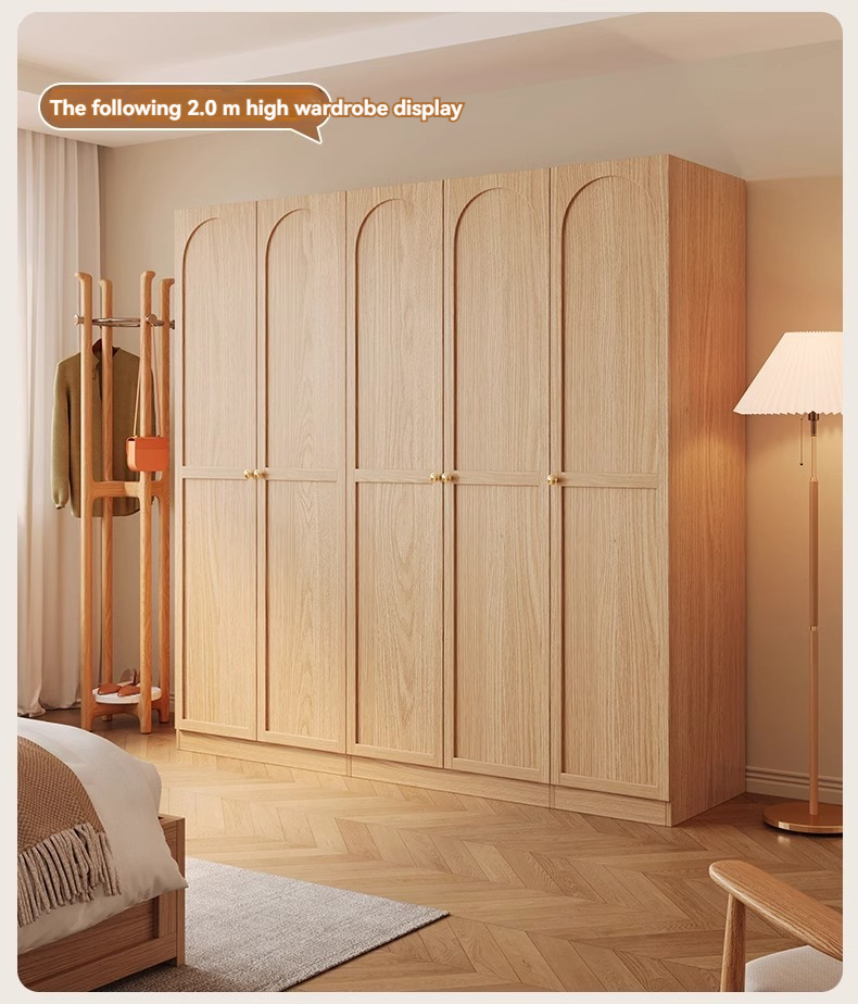[2-meter-high/18MM wooden core board] Five door wardrobe+curved edge cabinet