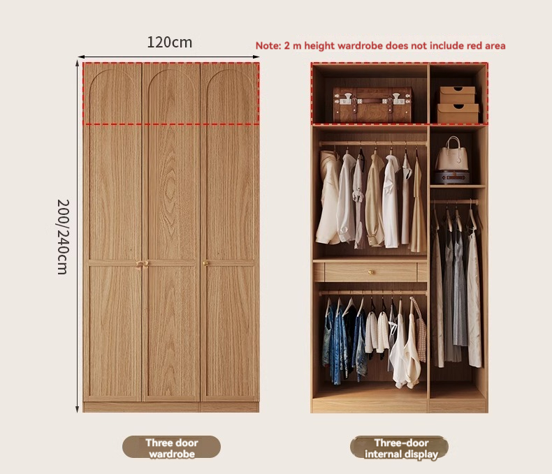 [2-meter-high/18MM wooden core board] Three door wardrobe+curved edge cabinet