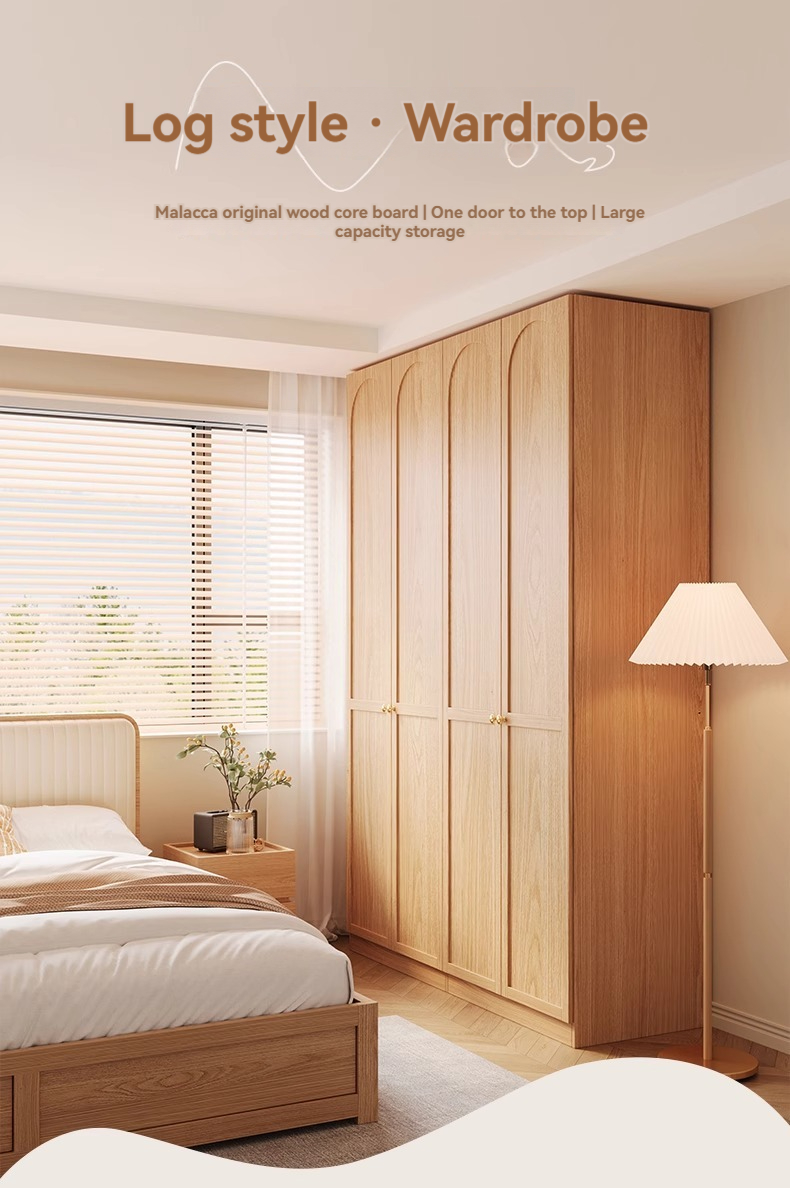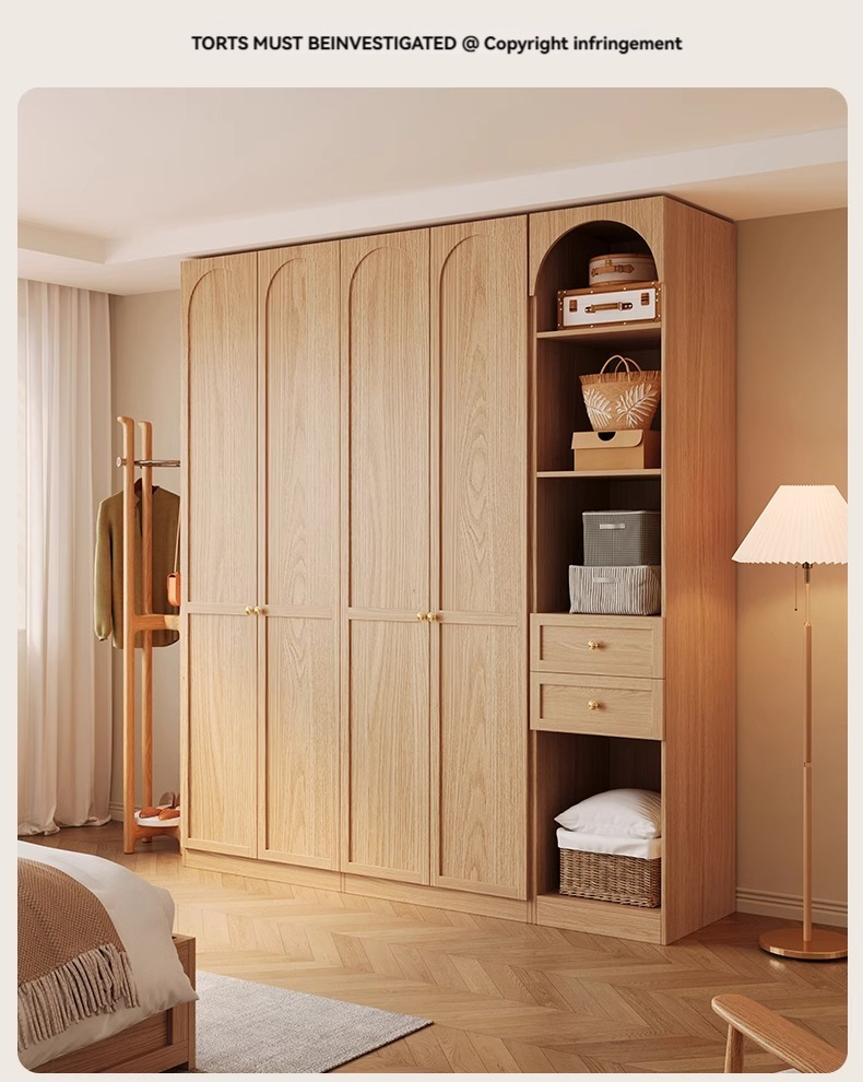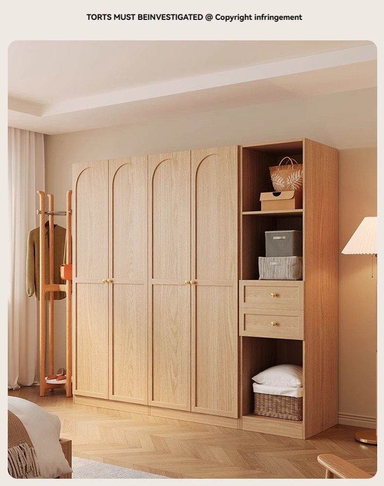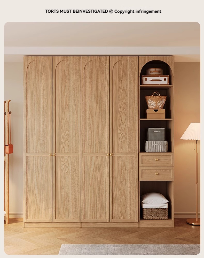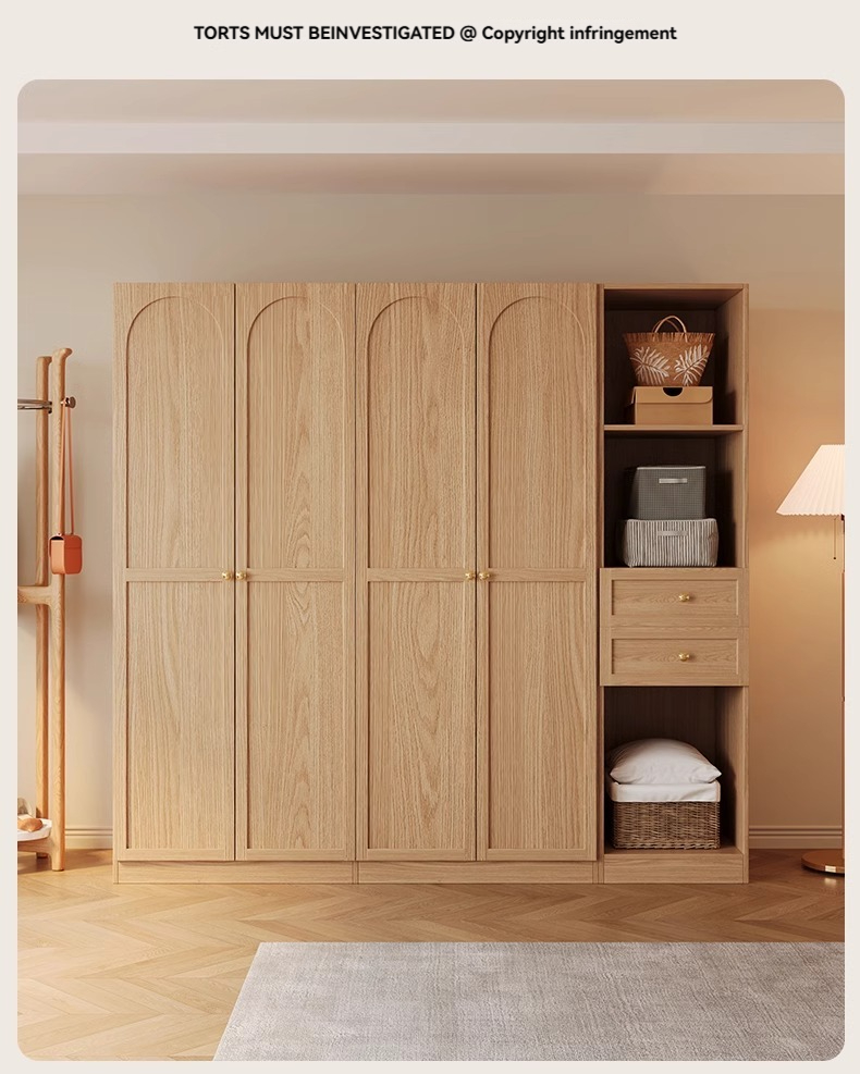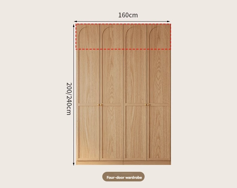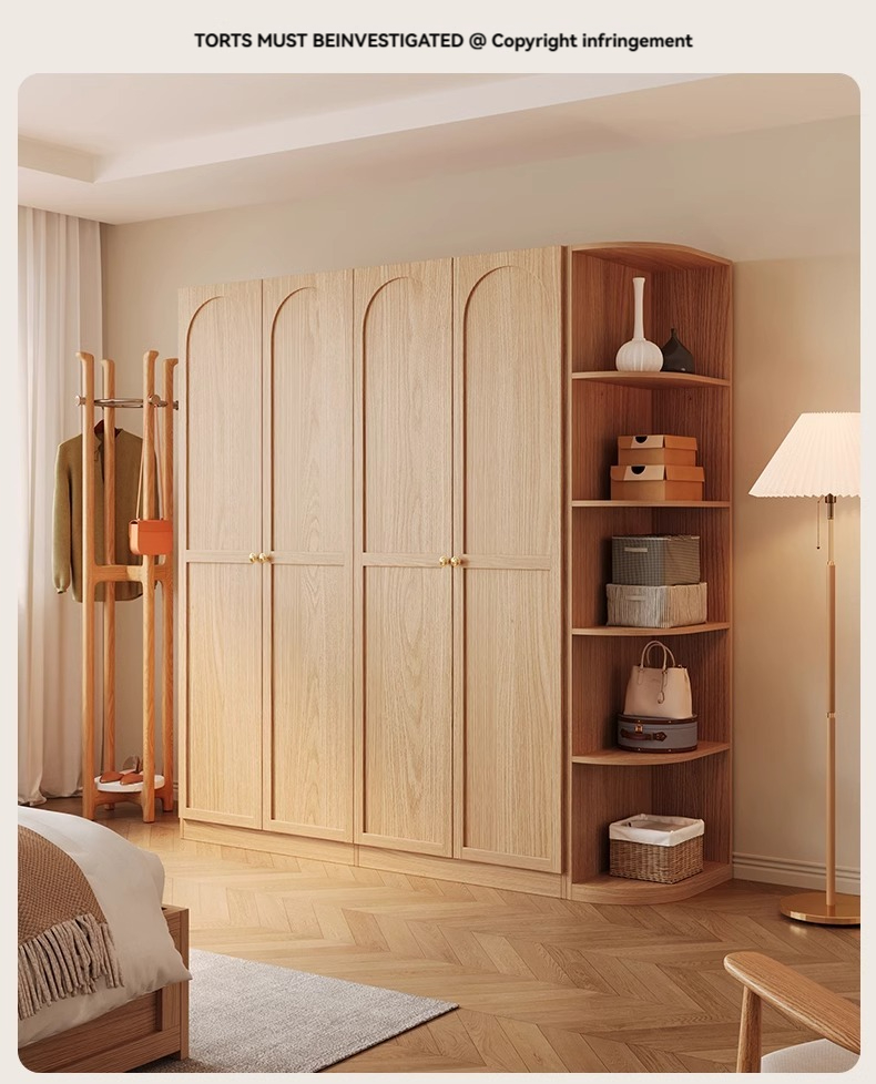 [2-meter-high/18MM wooden core board] Four door wardrobe+curved edge cabinet