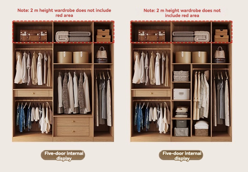 【 2.4-meter-high/18MM wooden core board 】 Five door wardrobe+cabinet with edge drawer