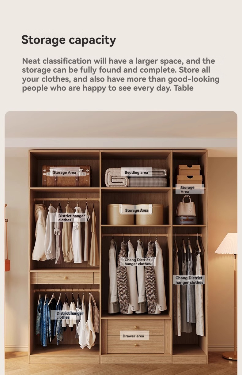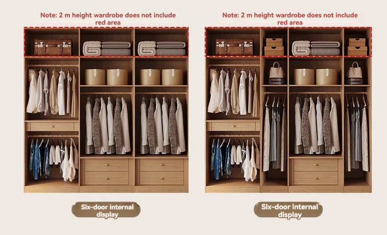 【 2-meter-high/18MM wooden core board 】 Six door wardrobe+cabinet with drawstring edge