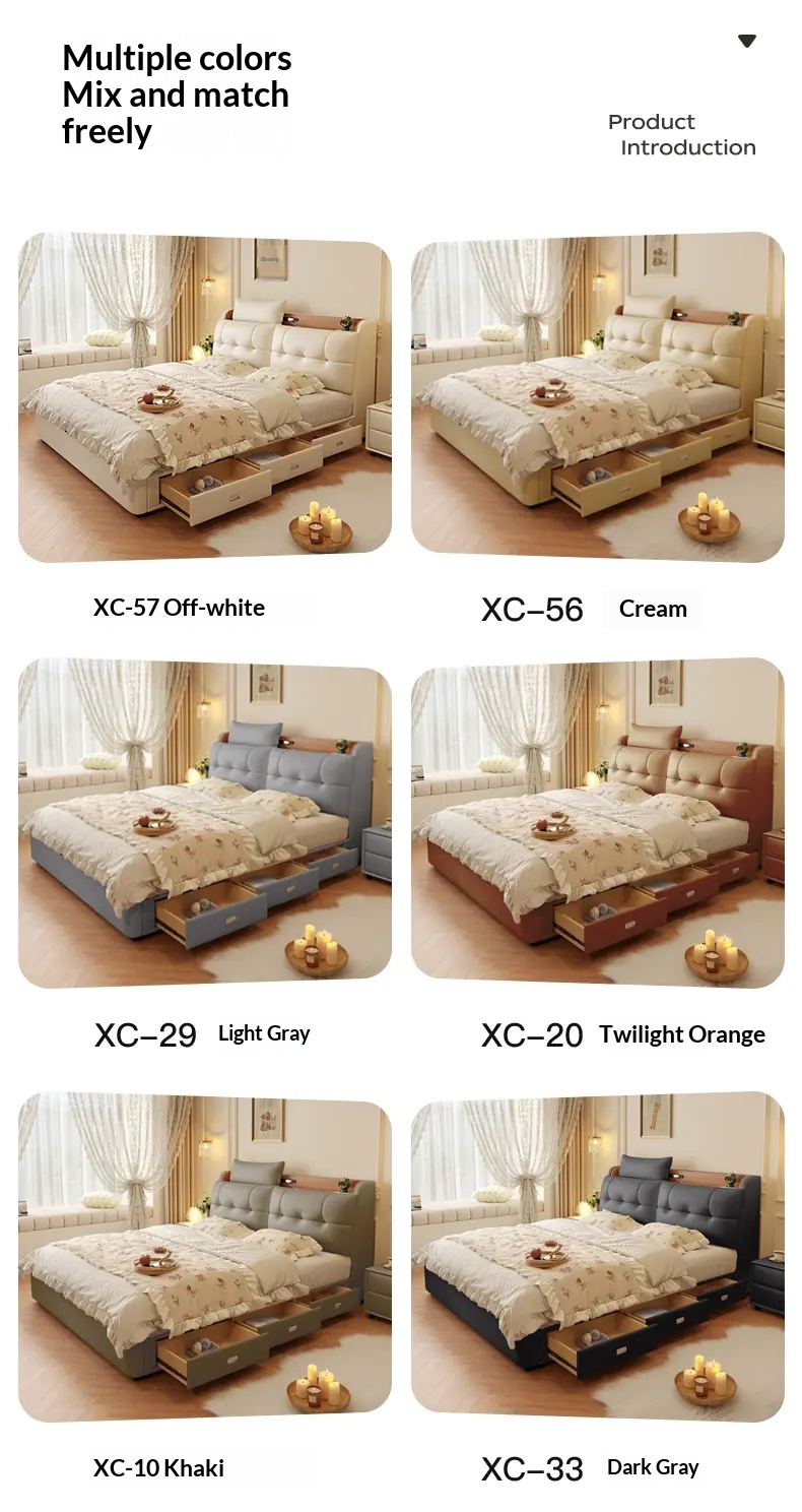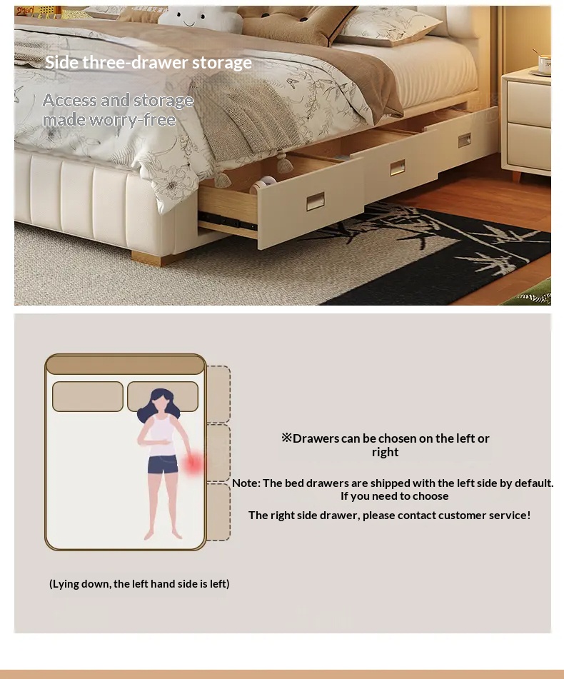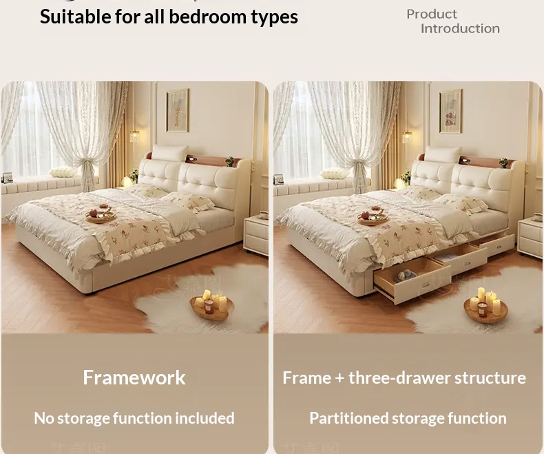 Double-Sized Wedding Bed with High Storage Drawer & Genuine Leather Upholstery