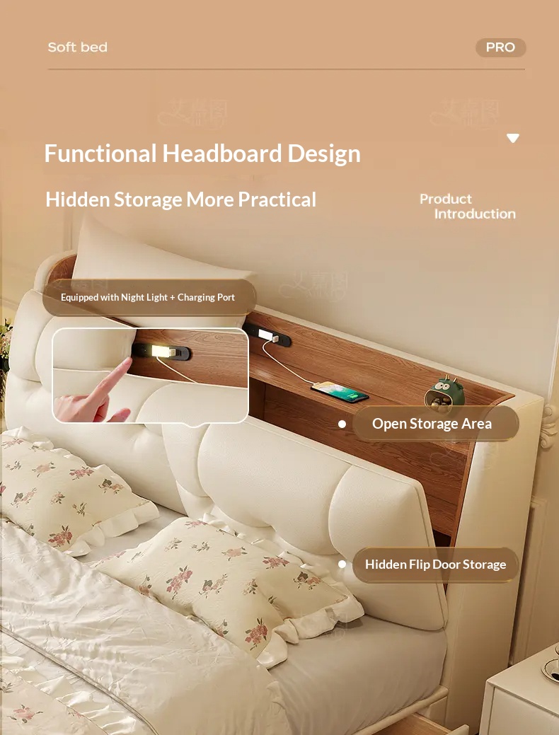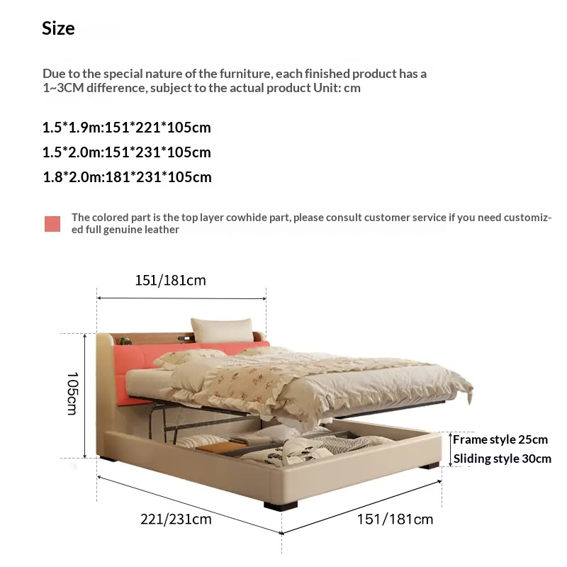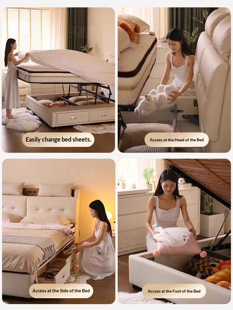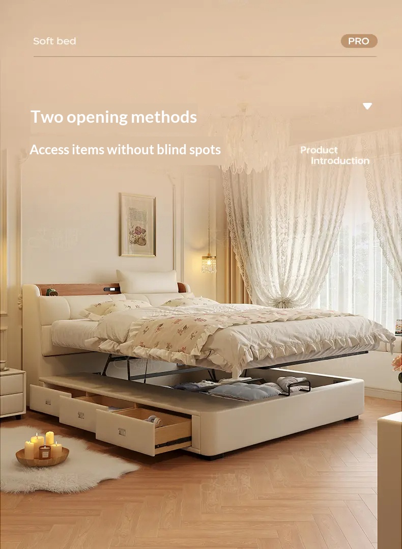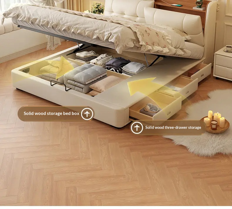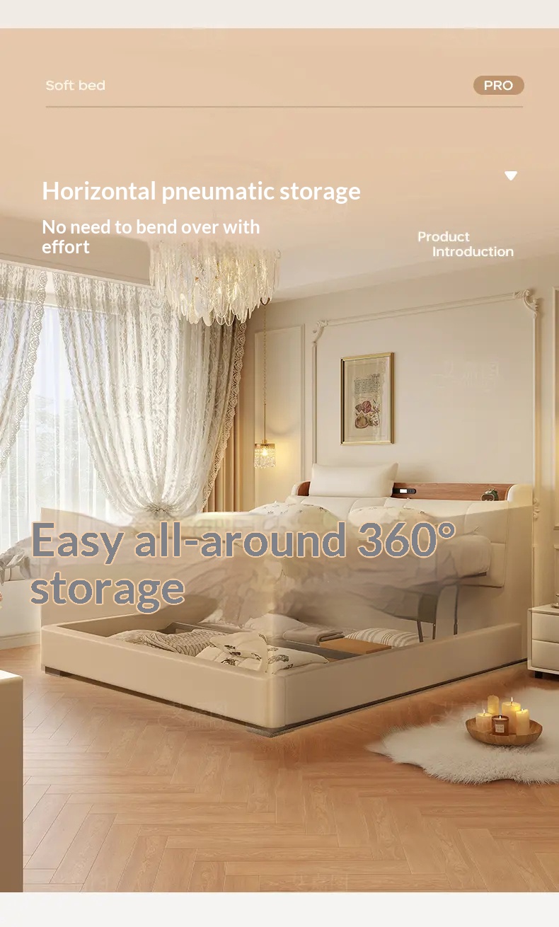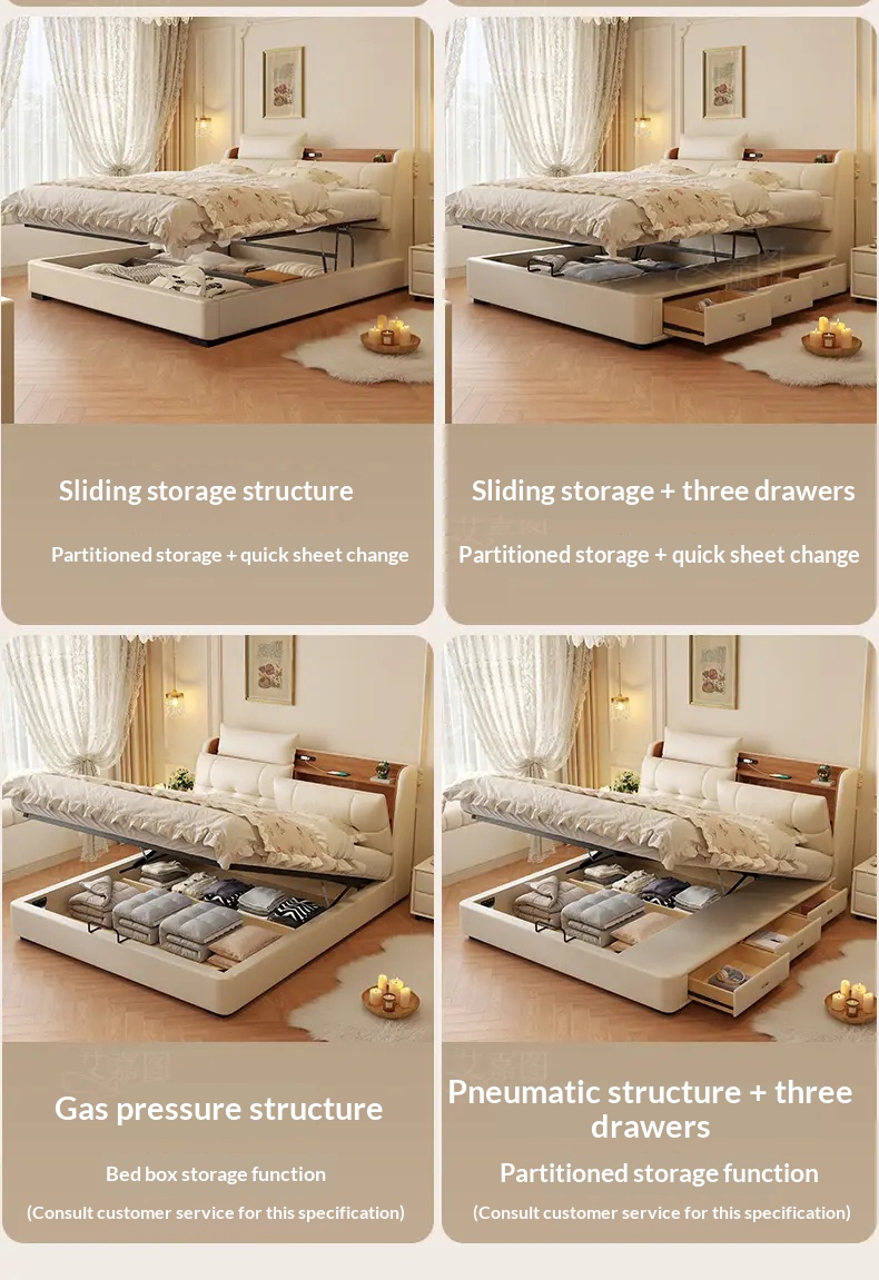 [Pre Order] Multi-Functional High-End Air-Lift Storage Bed for Master Bedroom - Double-Sized Wedding Bed with High Storage Drawer & Genuine Leather Upholstery