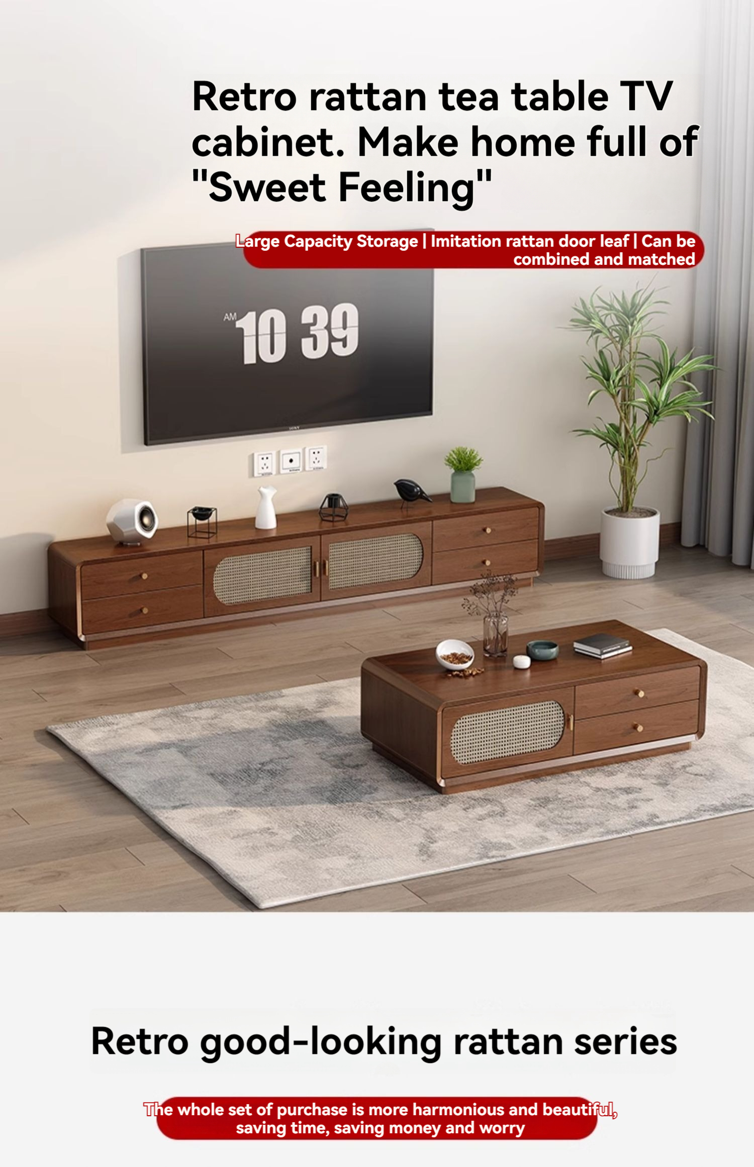 [pre order]New Chinese coffee table, TV cabinet, storage cabinet, integrated household living room