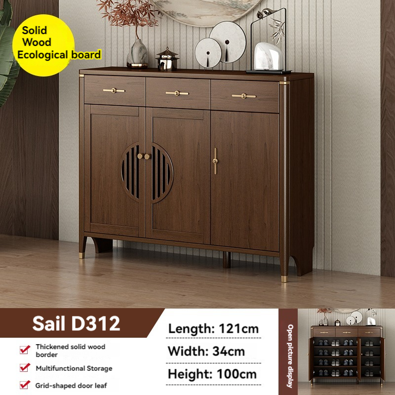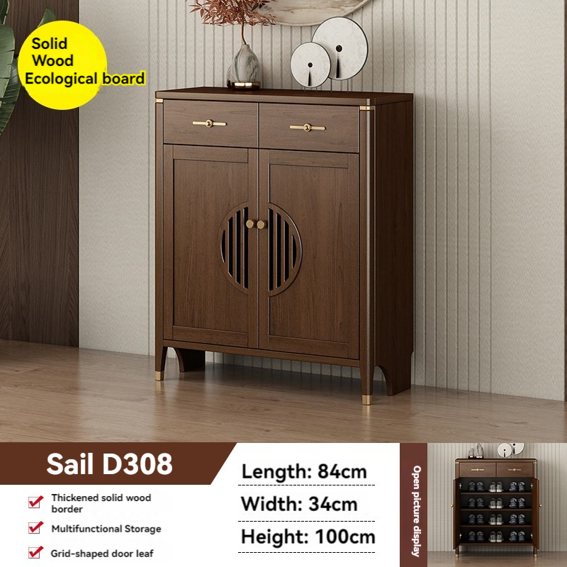 [Pre-order]  New Chinese Style All Solid Wood Shoe Cabinet Home Door Large Capacity Storage Cabinet Living Room Entrance Door Cabinet Against The Wall Storage Cabinet-Smart-Living