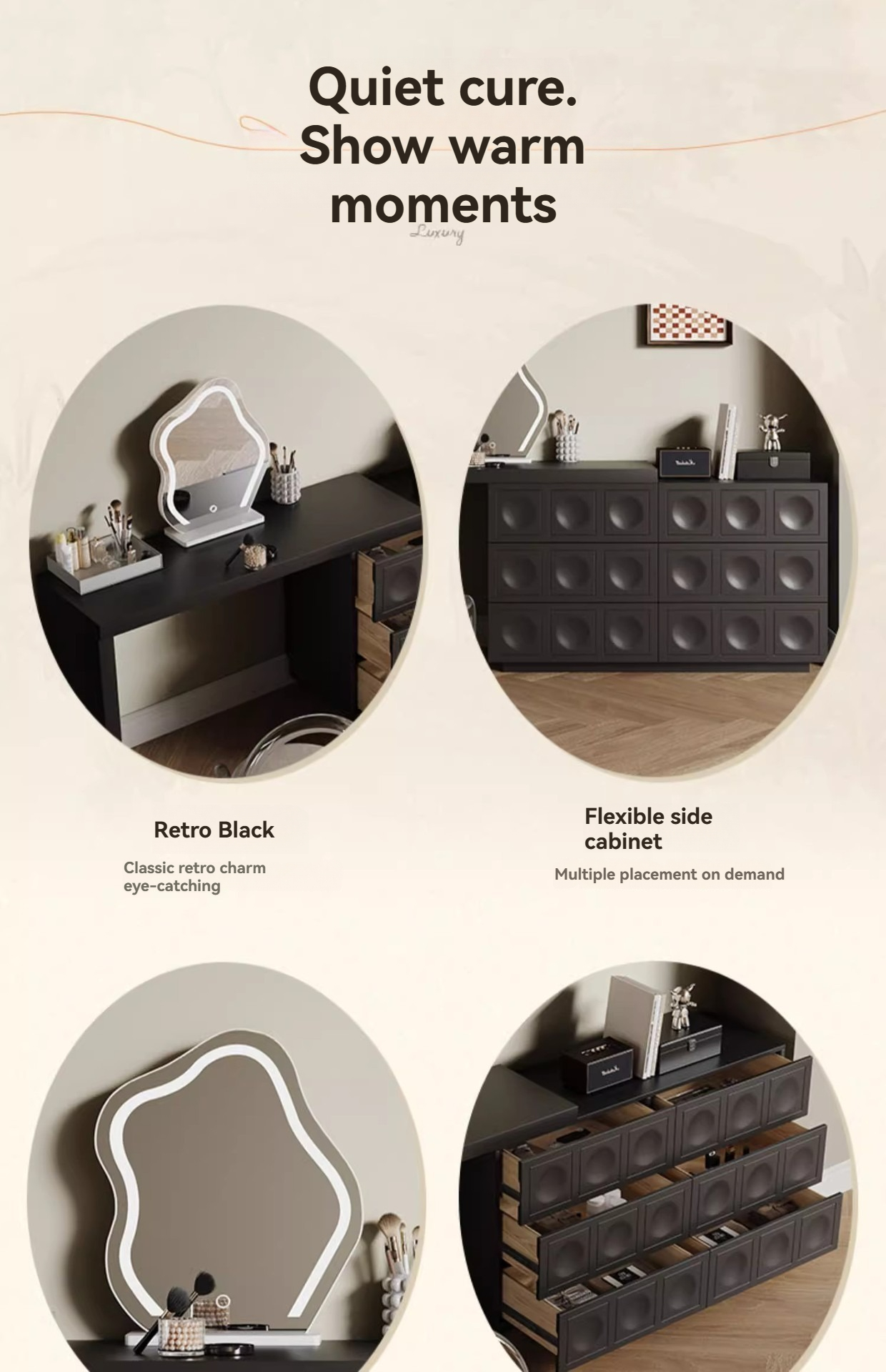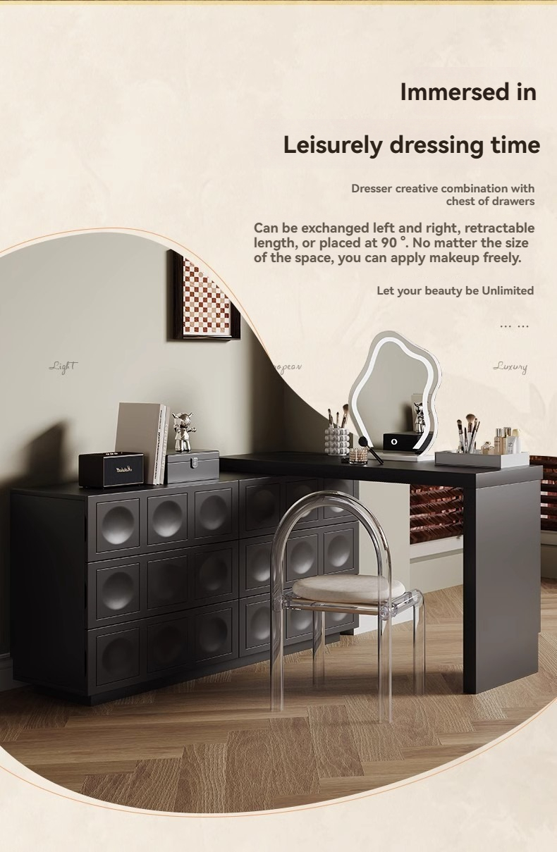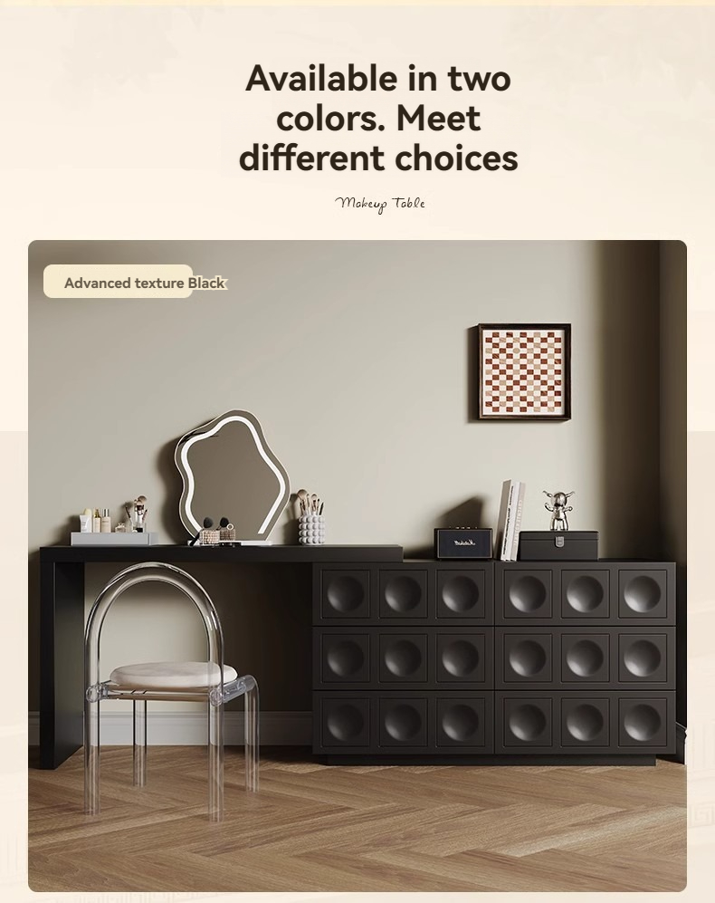 1.2 m chest of drawers + 1.2 m comb table, 1.2 m chest of drawers + 1.2 m comb table + cloud mirror (cabinet body of the same color), 1.2 meters of chest of drawers + 1.2 meters of card table + acrylic chair, 1.2 meters of chest of drawers + 1.2 m card table + cloud mirror (cabinet body of the same color) + acrylic chair