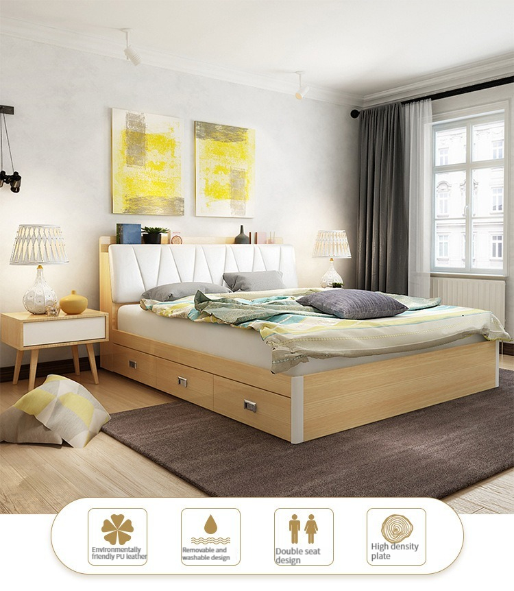 [Pre-order] Nordic board style high box bed for master bedroom, single/double bed 1.5m/1.8m, multifunctional storage bed for wholesale-Smart-Living [Pre-order] Nordic board style high box bed for master bedroom, single/double bed 1.5m/1.8m, multifunctional storage bed for wholesale-Smart-Living