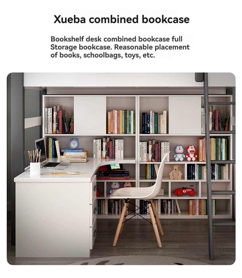 1.2*1.9m bed+hung ladder+desk and bookcase+bookcase