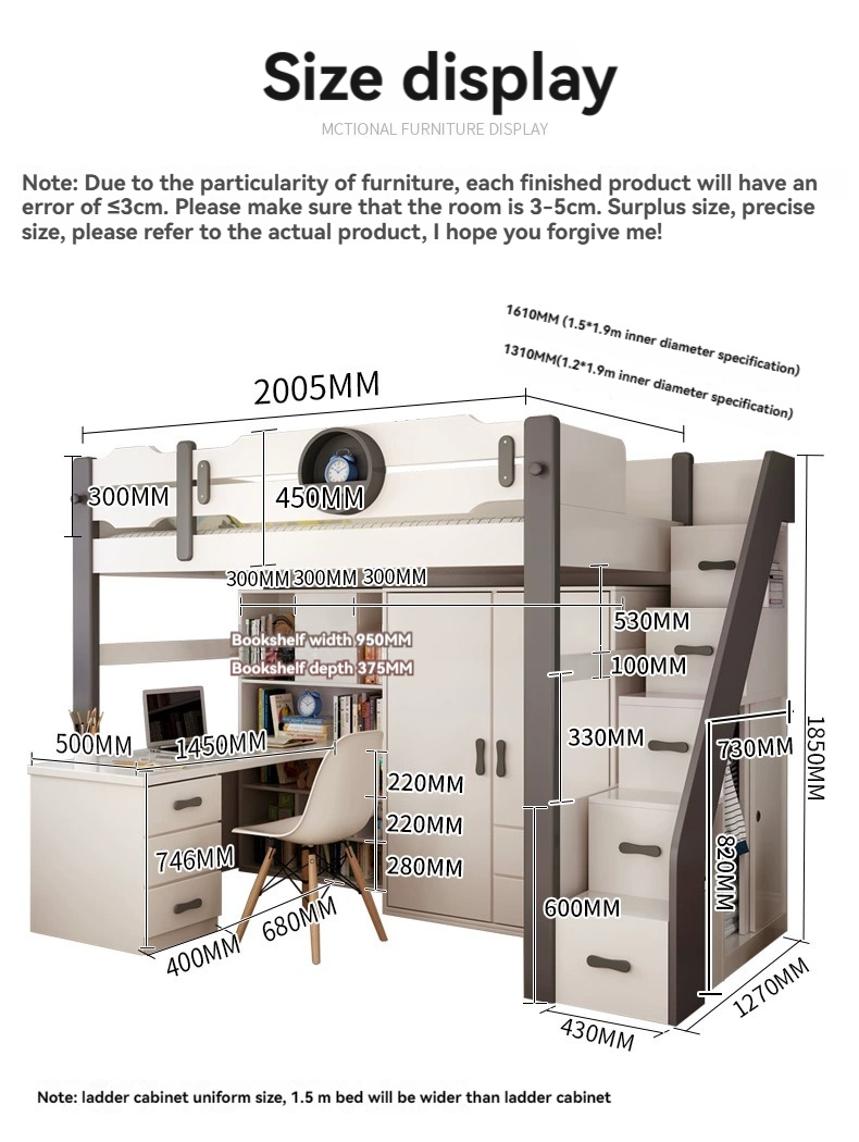 1.5*1.9m bed+ladder cabinet+bookcase+bookcase