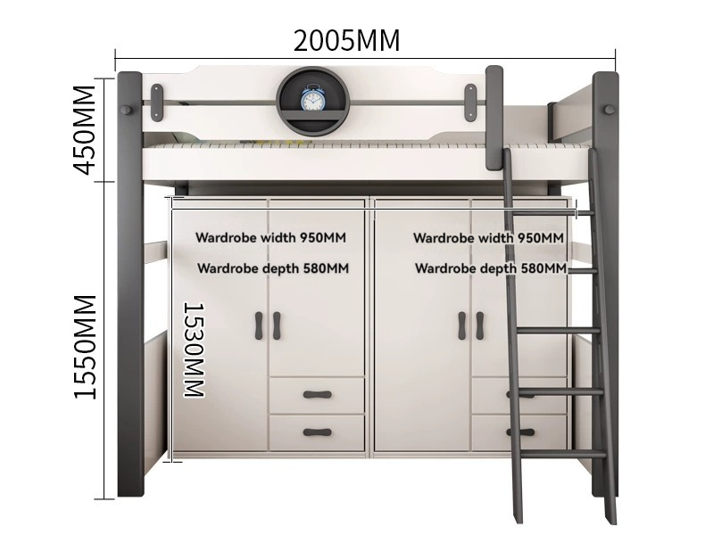 1.5*1.9m bed+hanging ladder+wardrobe+closet