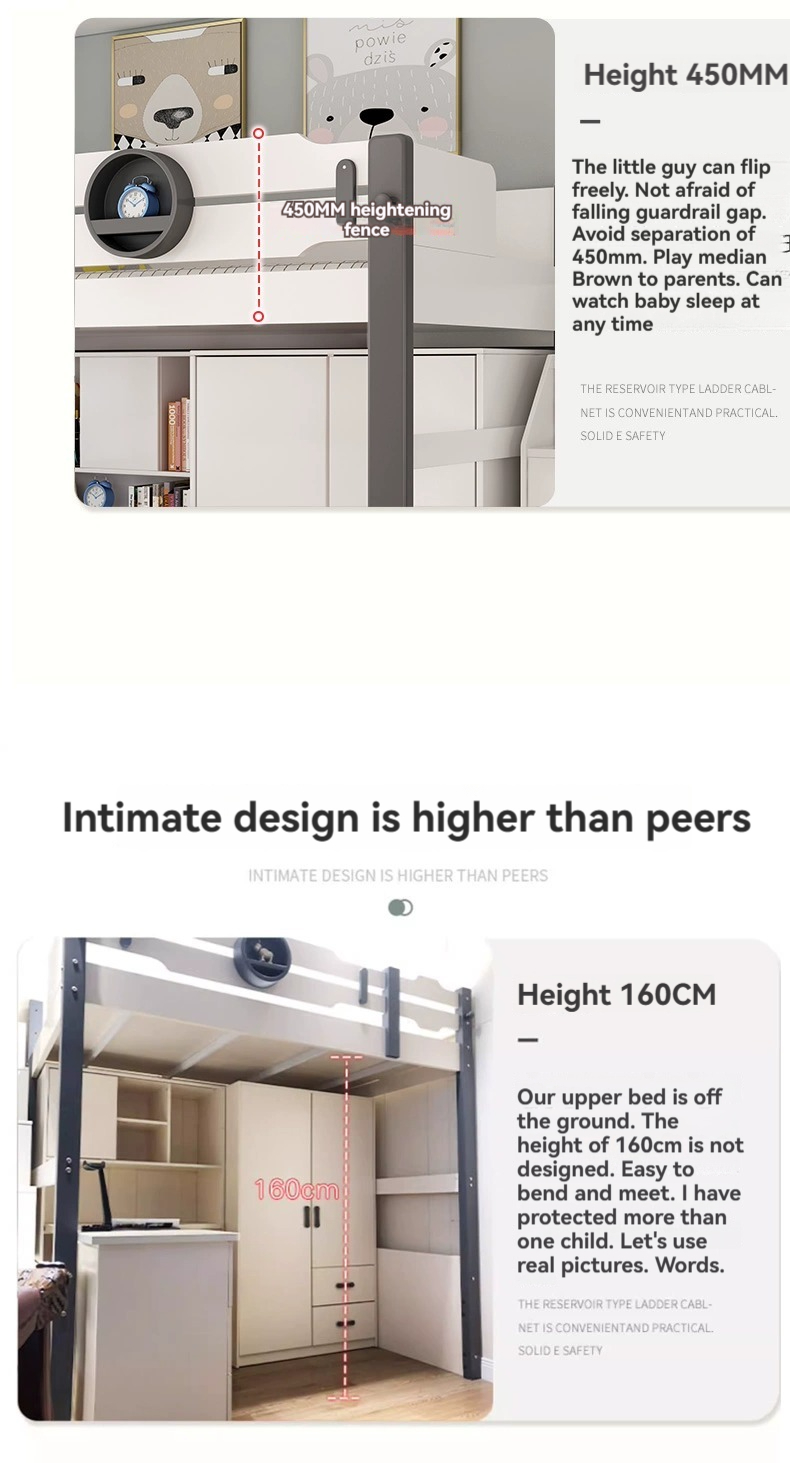 1.5*1.9m bed+hung ladder+desk and bookcase+bookcase